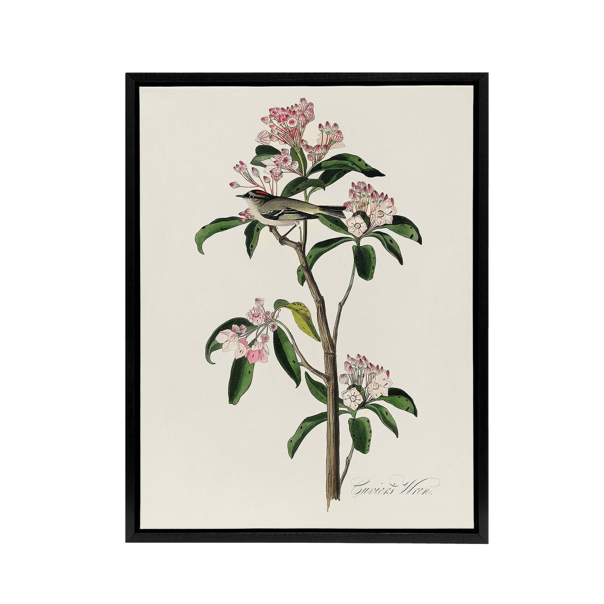 Cuviers Kinglet Bird and Mountain Laurel Audubon Framed Canvas Wall Art
