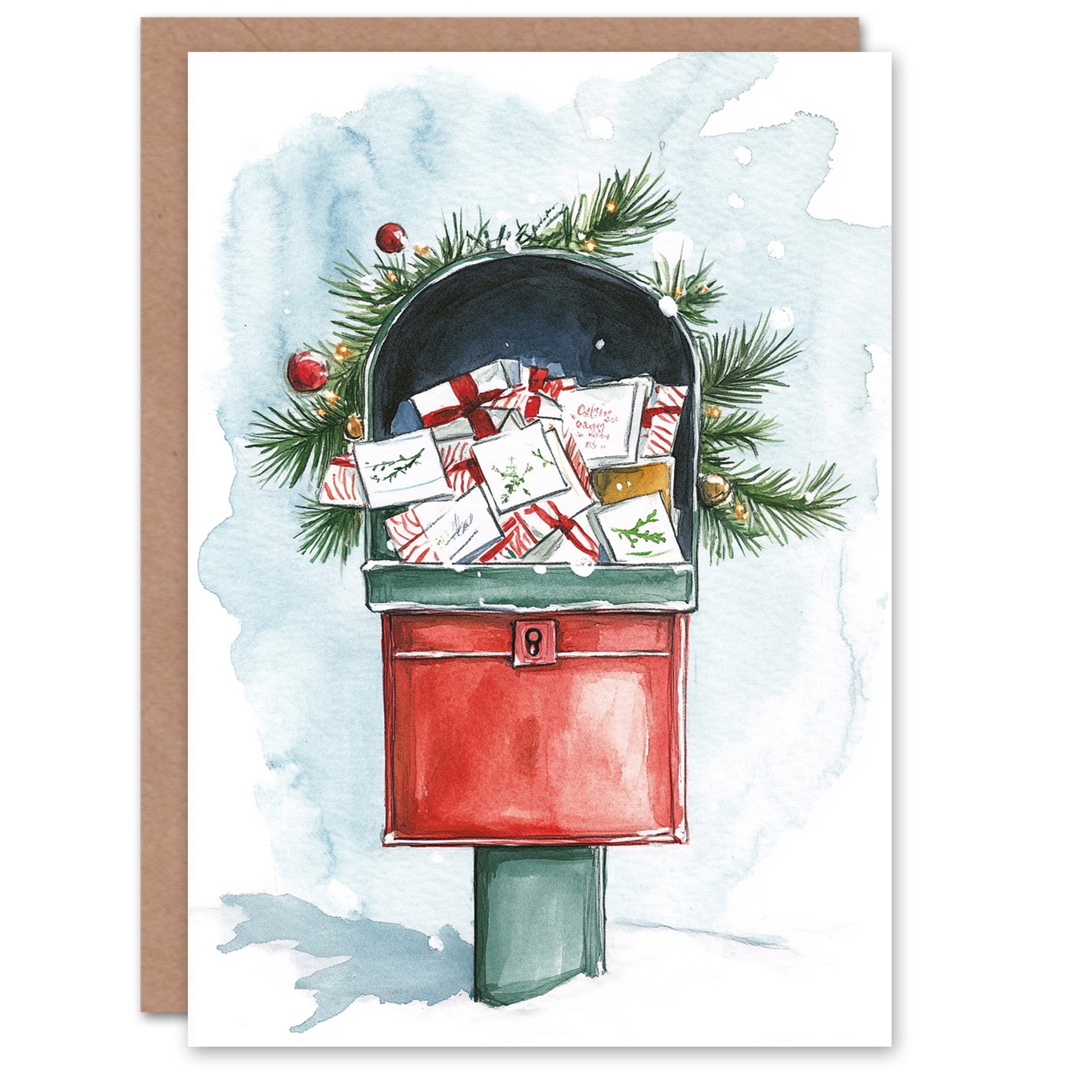 Decorated Letterbox Full Of Gifts Festive Xmas Christmas Card