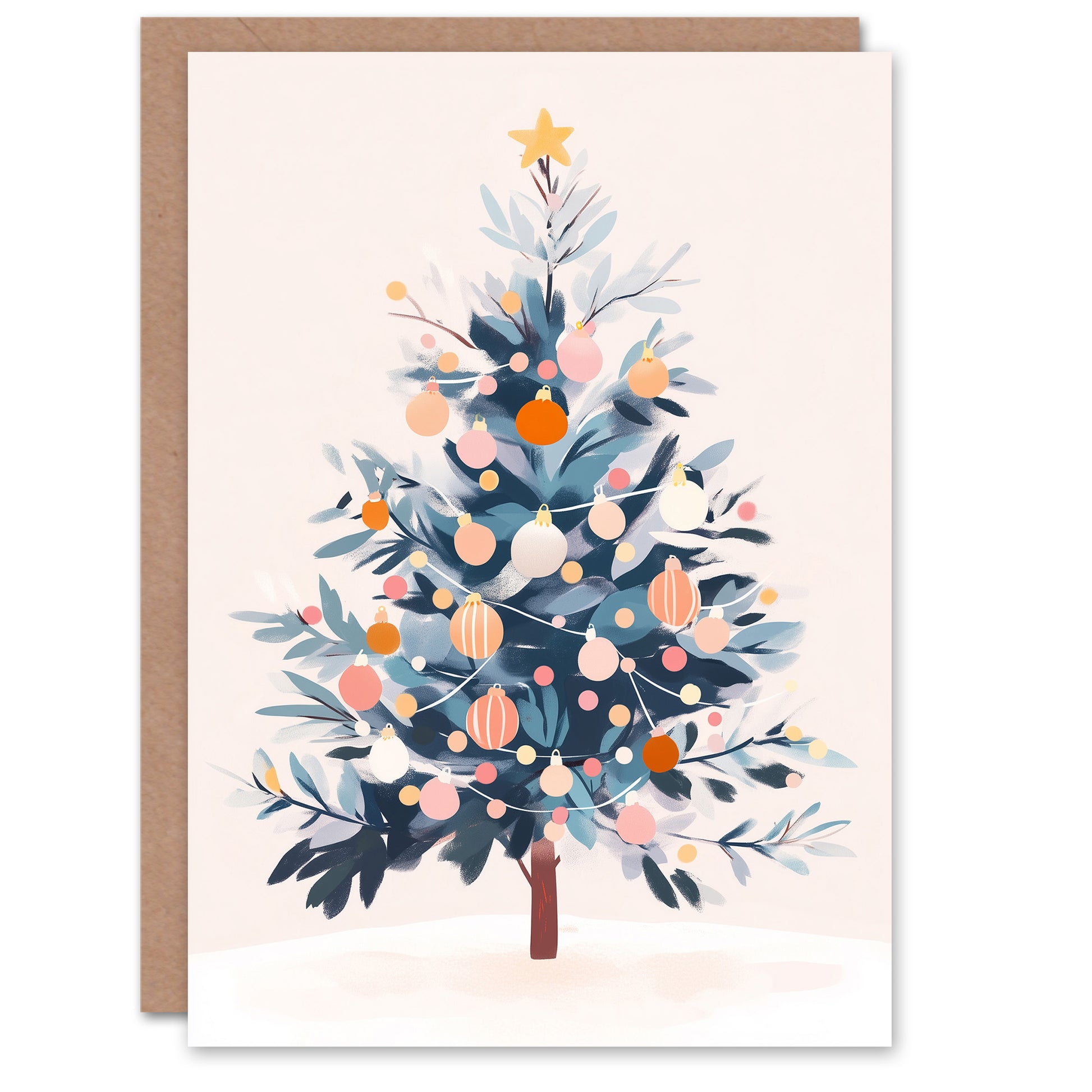Decorated Tree Pink Orange Baubles Fairy Lights Christmas Card