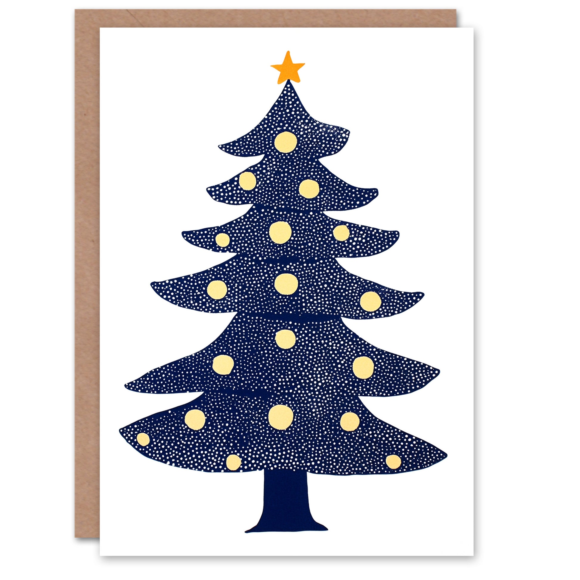 Decorated Tree Polka Dot Folk Art Blue Orange Christmas Card