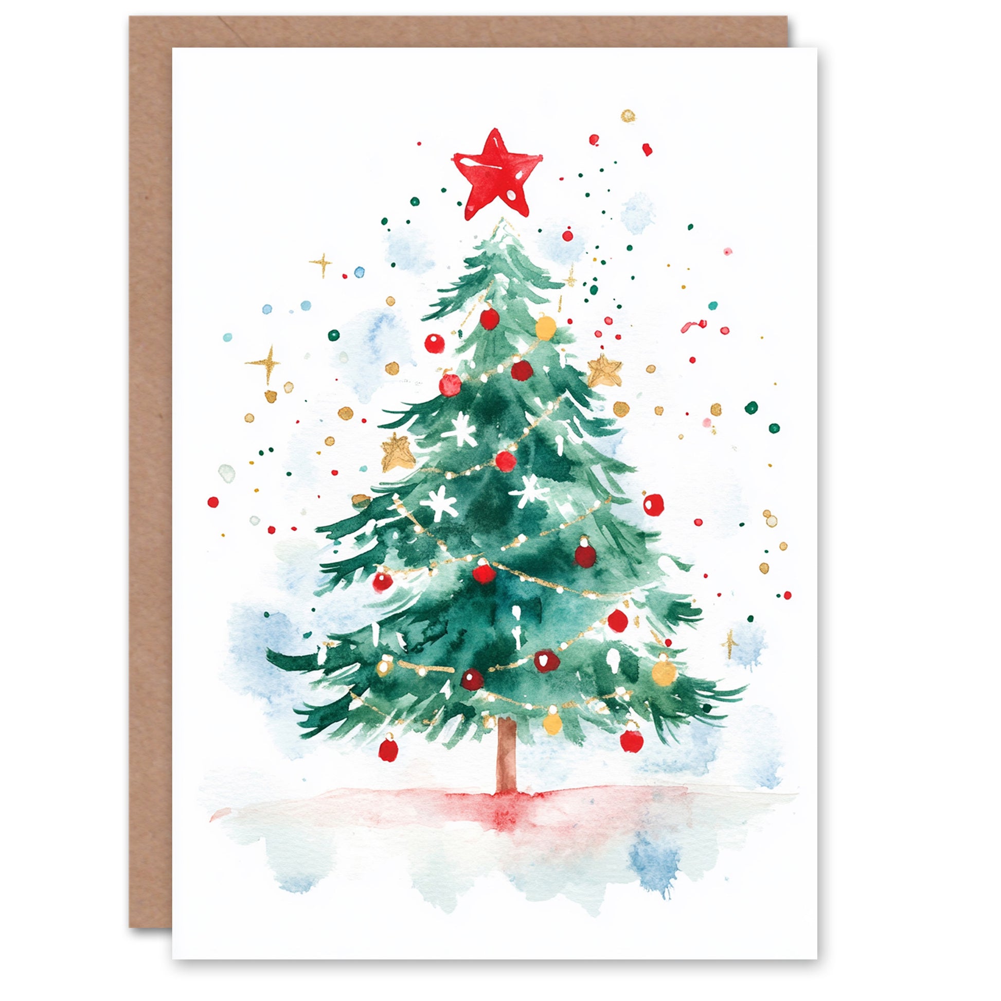 Decorated Tree Red Star Light Festive Xmas Christmas Card