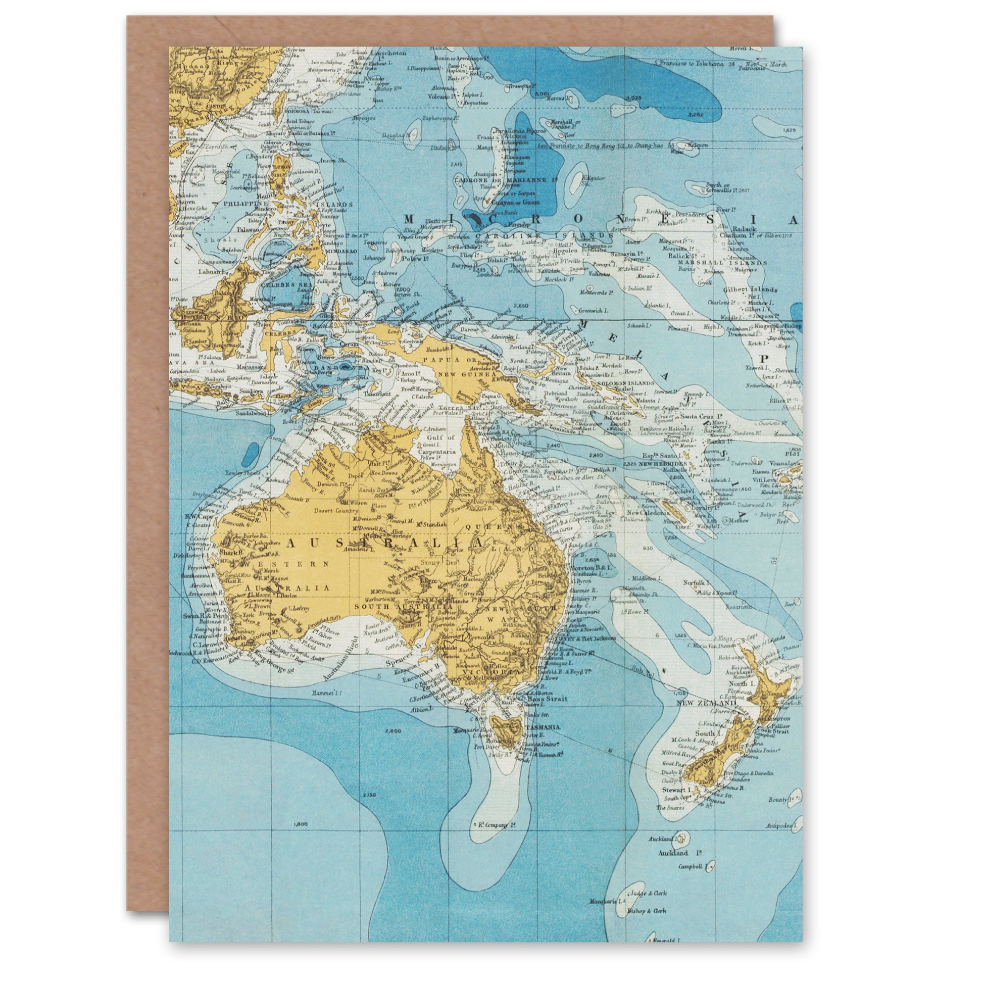 Edward Stanford Art Card Australasia Vintage Bathymetric Map
