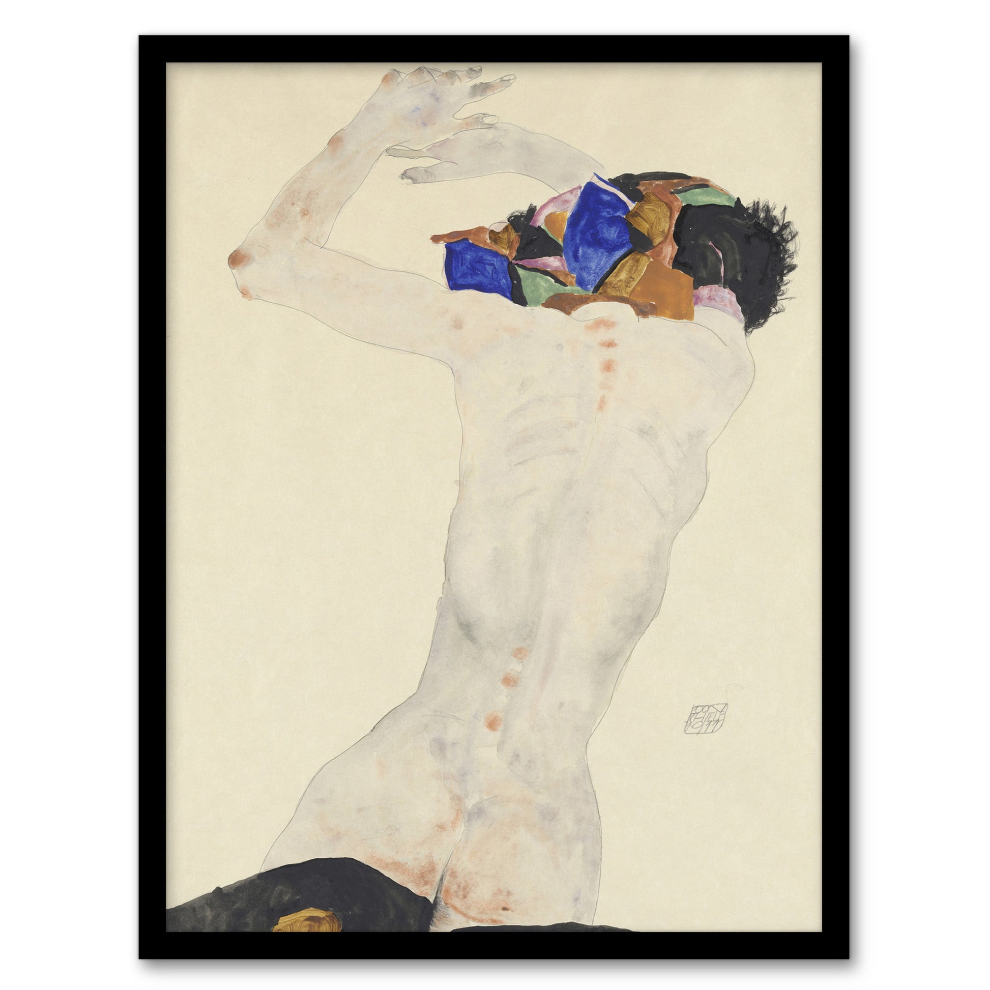Egon Schiele Framed Wall Art Print Back Nude With Colorful Cloth Home Décor