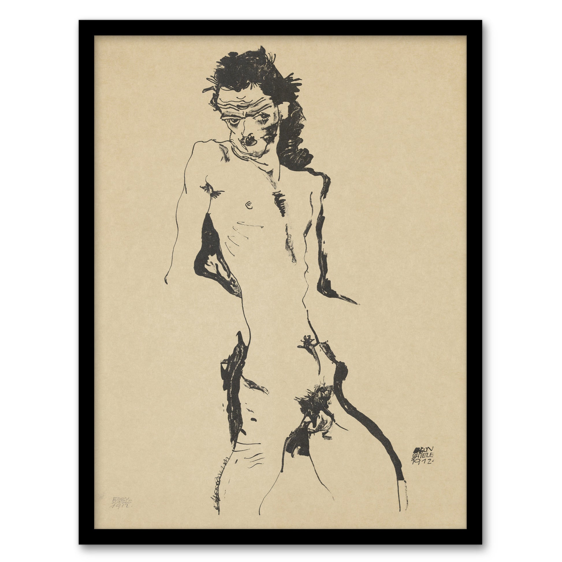 Egon Schiele Framed Wall Art Print Male Nude Self Portrait Sketch Home Décor