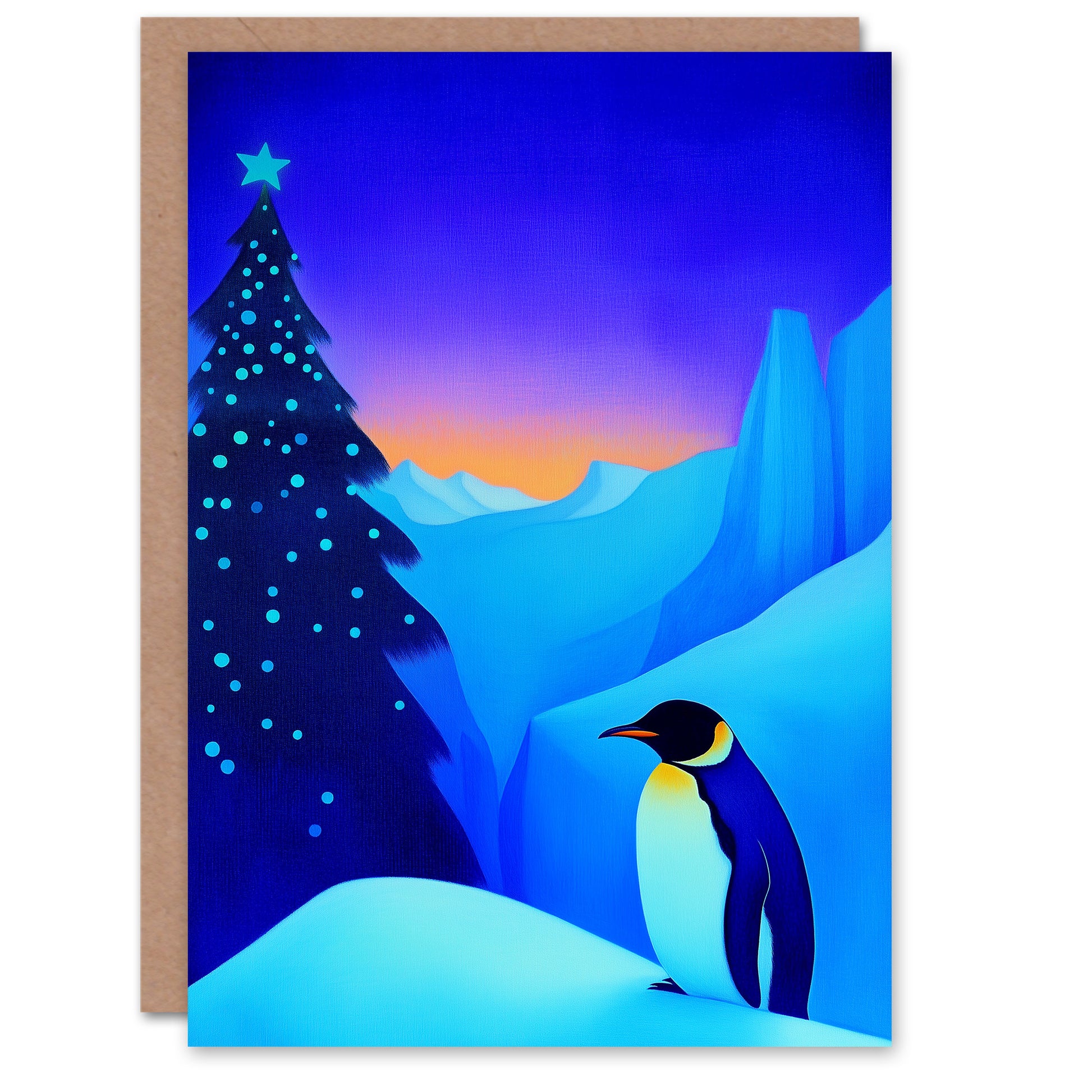 Emperor Penguin Decorated Tree Winter Landscape Christmas Card