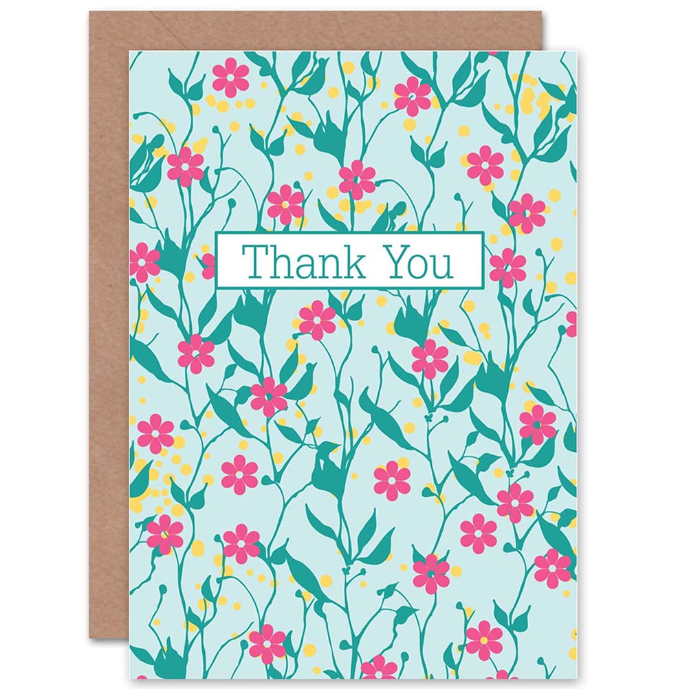 Floral Pattern Cute Typography Thank You Card