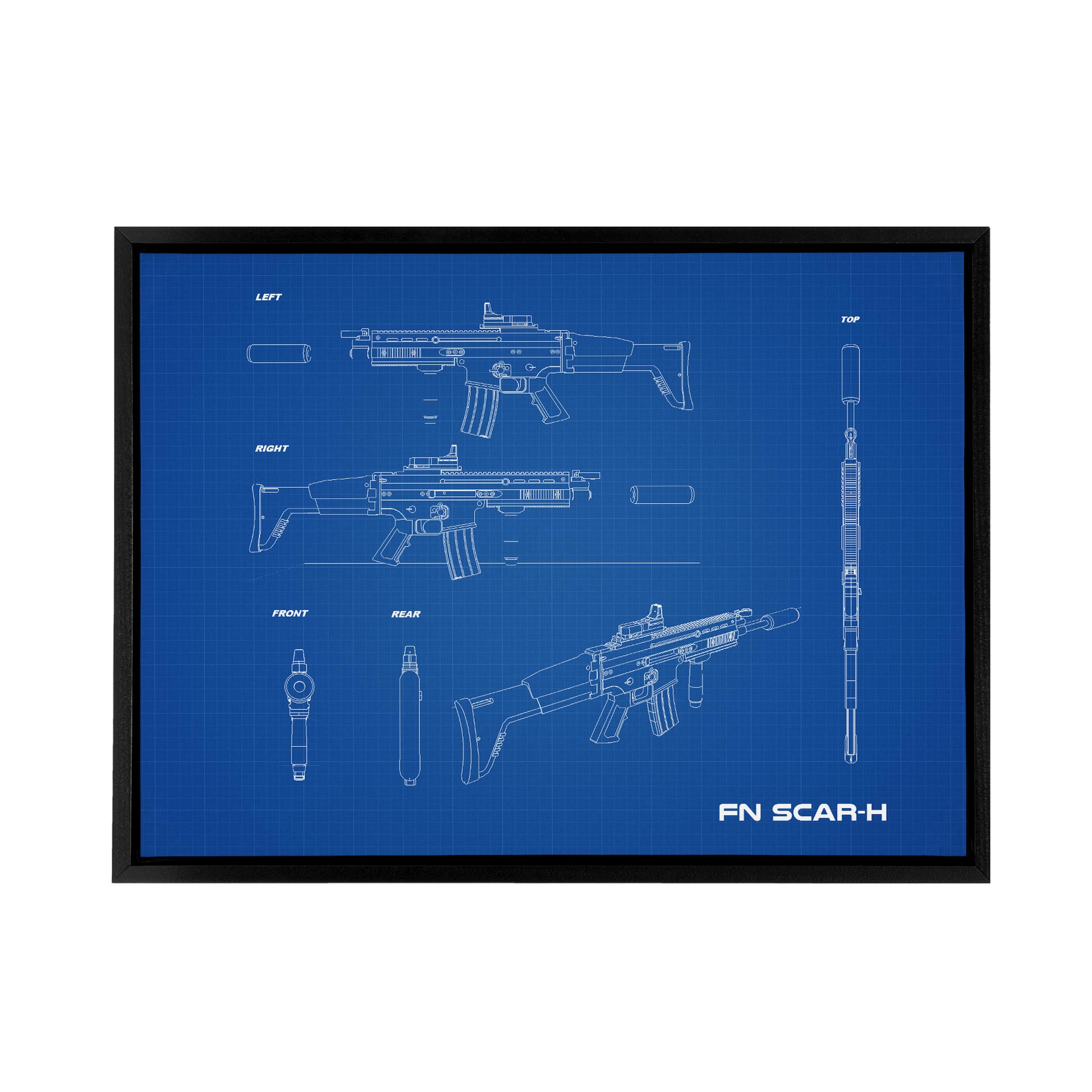 FN SCAR H Assault Rifle Blueprint Black Framed Canvas Wall Art Print