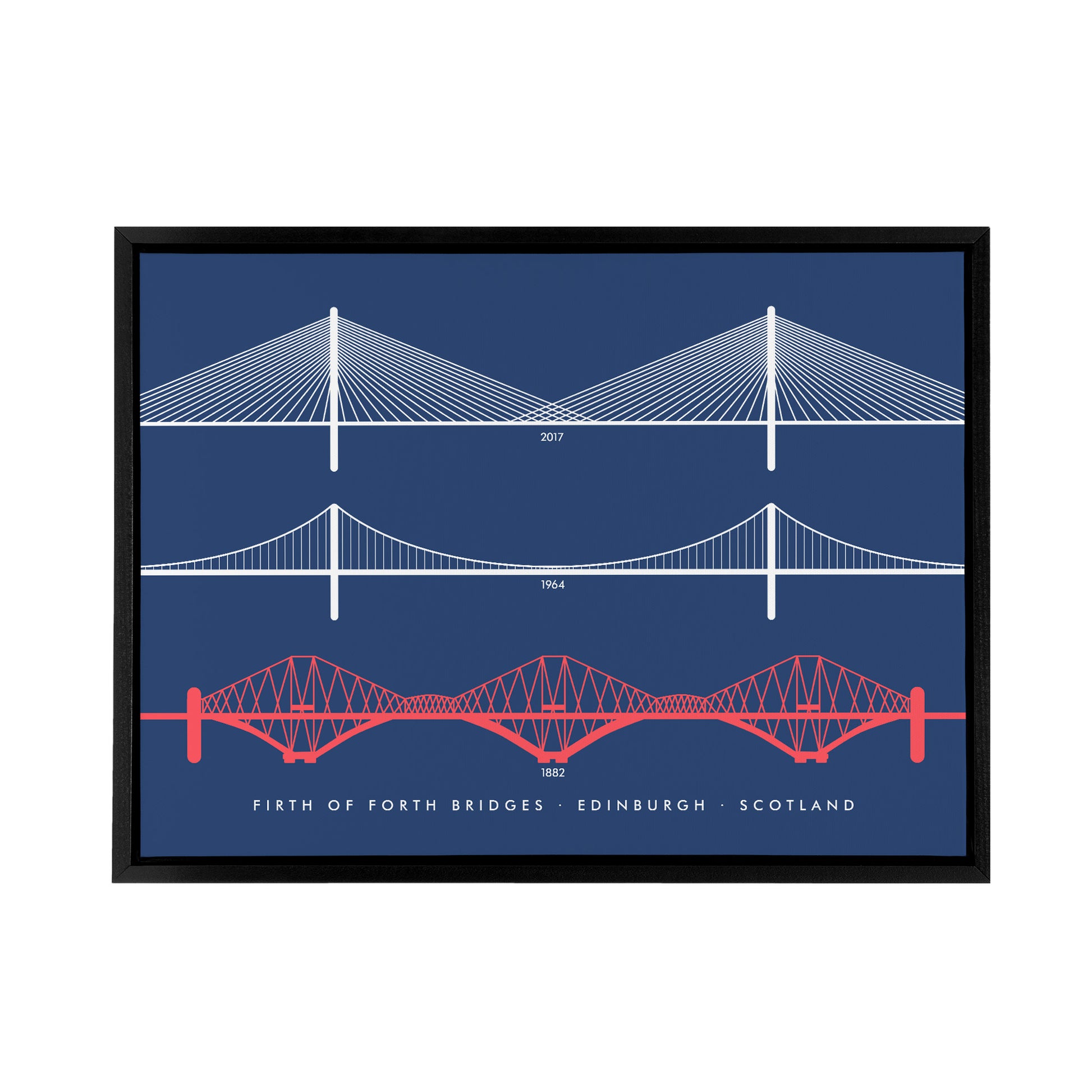Forth Bridges Edinburgh Scotland Black Framed Canvas Wall Art Print
