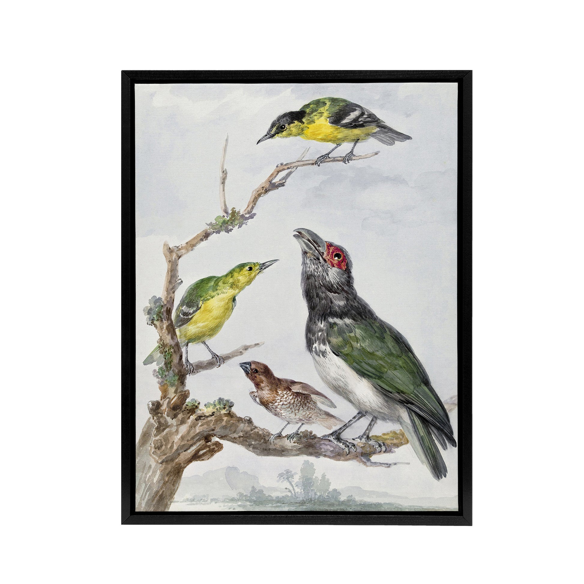 Four Different Birds on a Branch Schouman Framed Canvas Wall Art Print