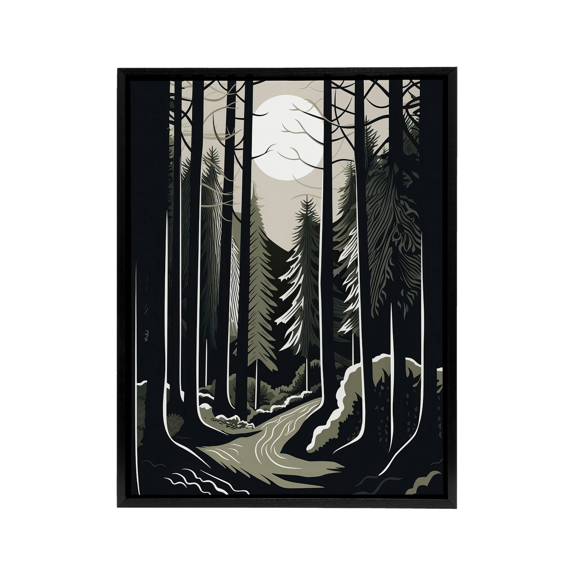 Full Moon Over Forest Landscape Black Framed Canvas Wall Art Print