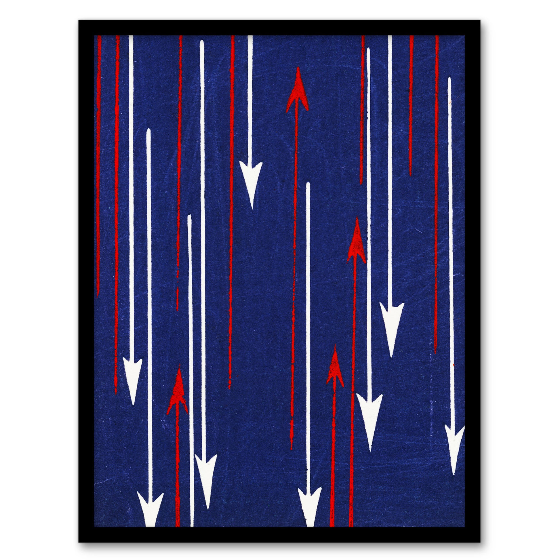 Furuya Korin Framed Wall Art Print Red Blue Arrows Textile Pattern Home Décor