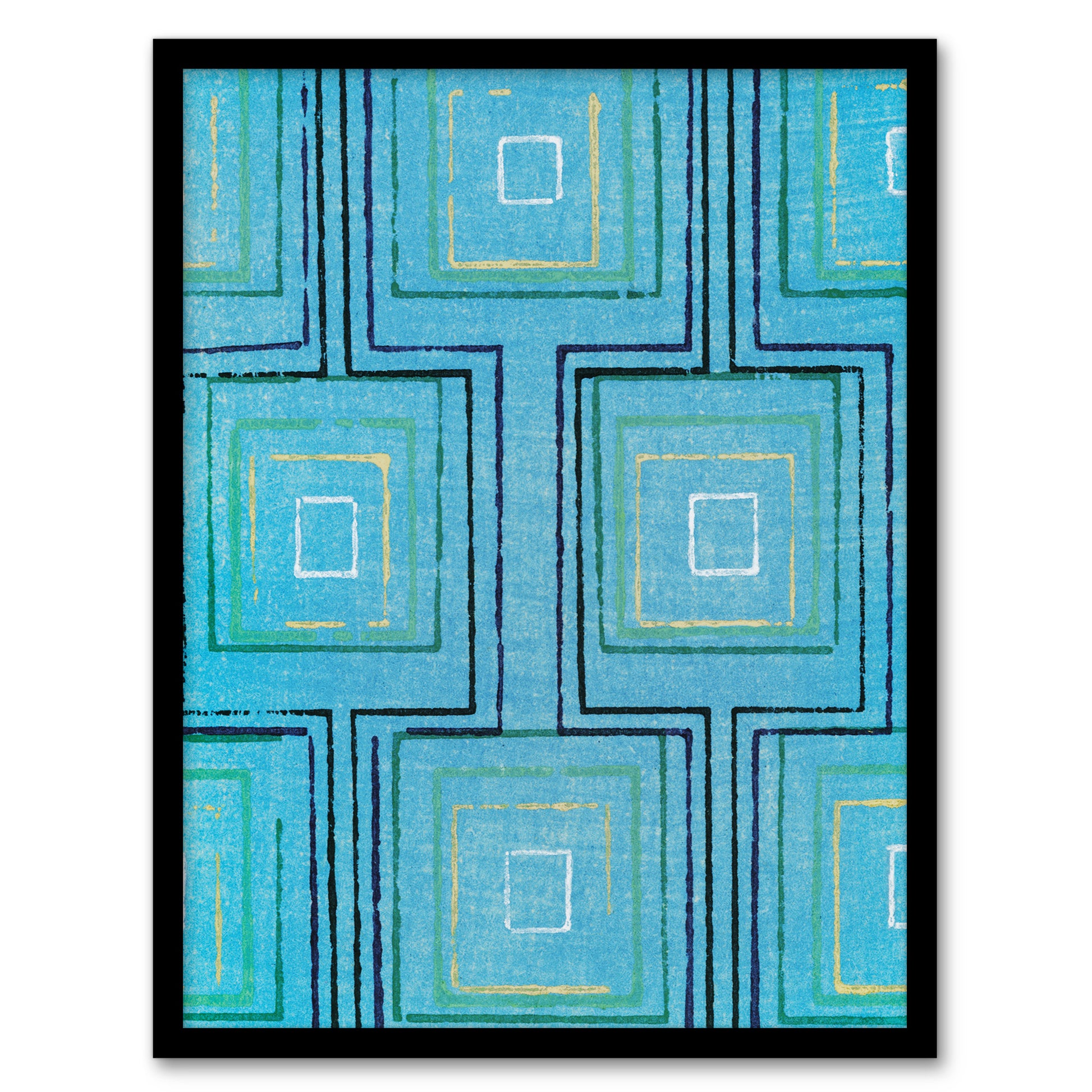 Furuya Korin Framed Wall Art Print Squares Geometric Blue Pattern Home Décor