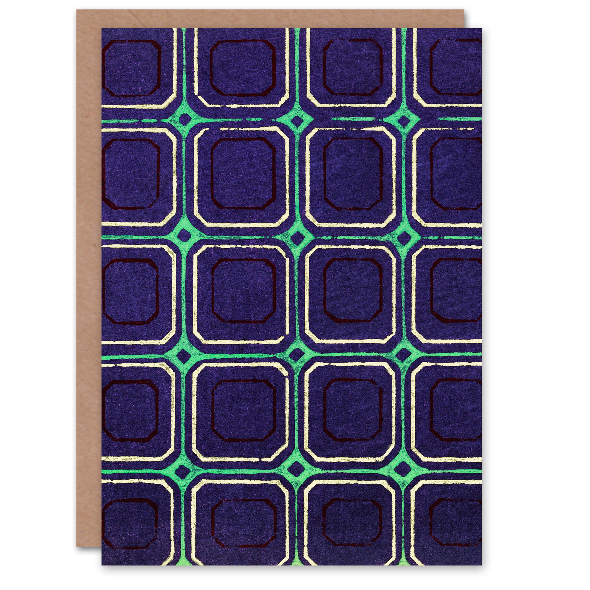 Furuya Korin Japanese Geometric Blue Green Square Pattern Greetings Card