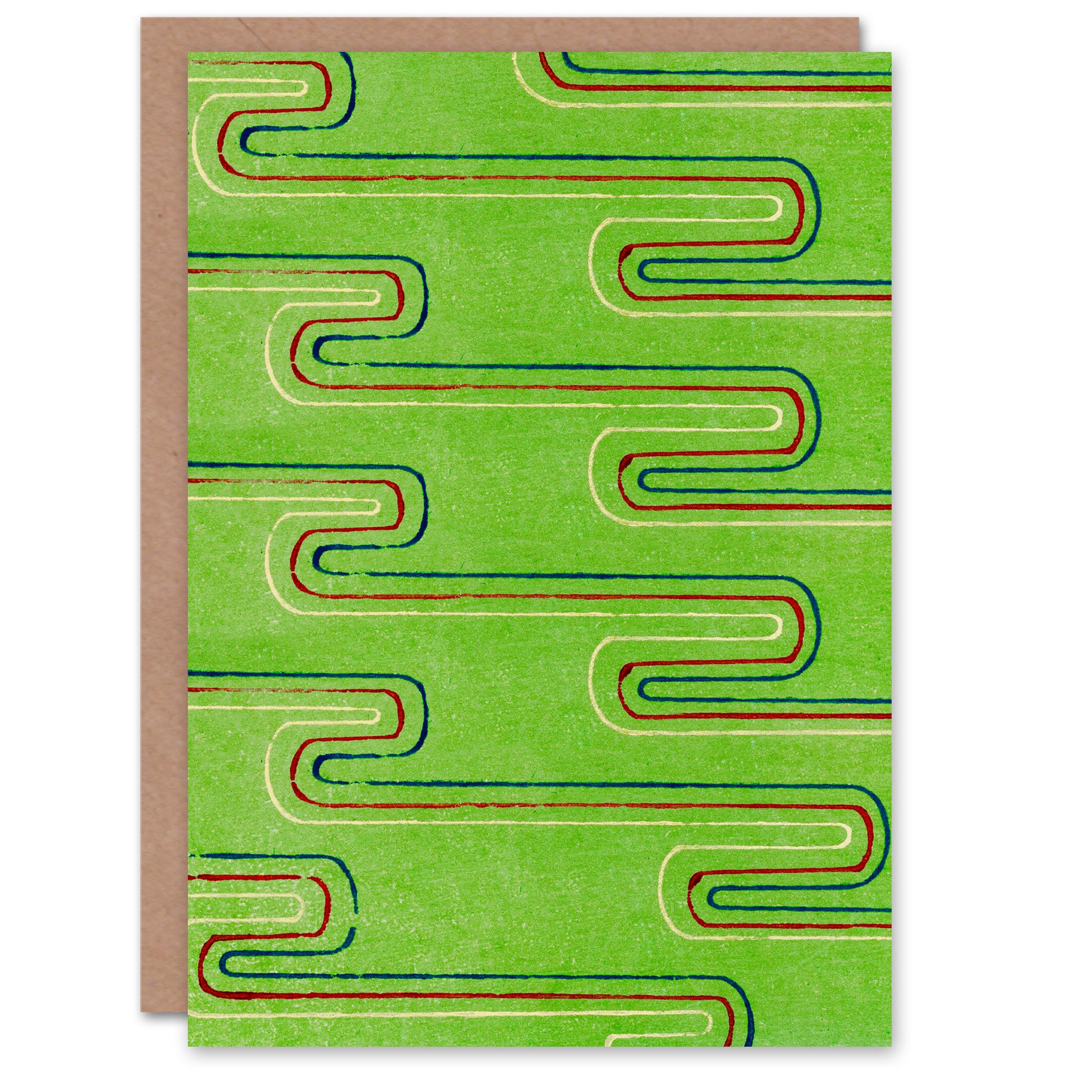 Furuya Korin Japanese Green Red Line Textile Pattern Greetings Card