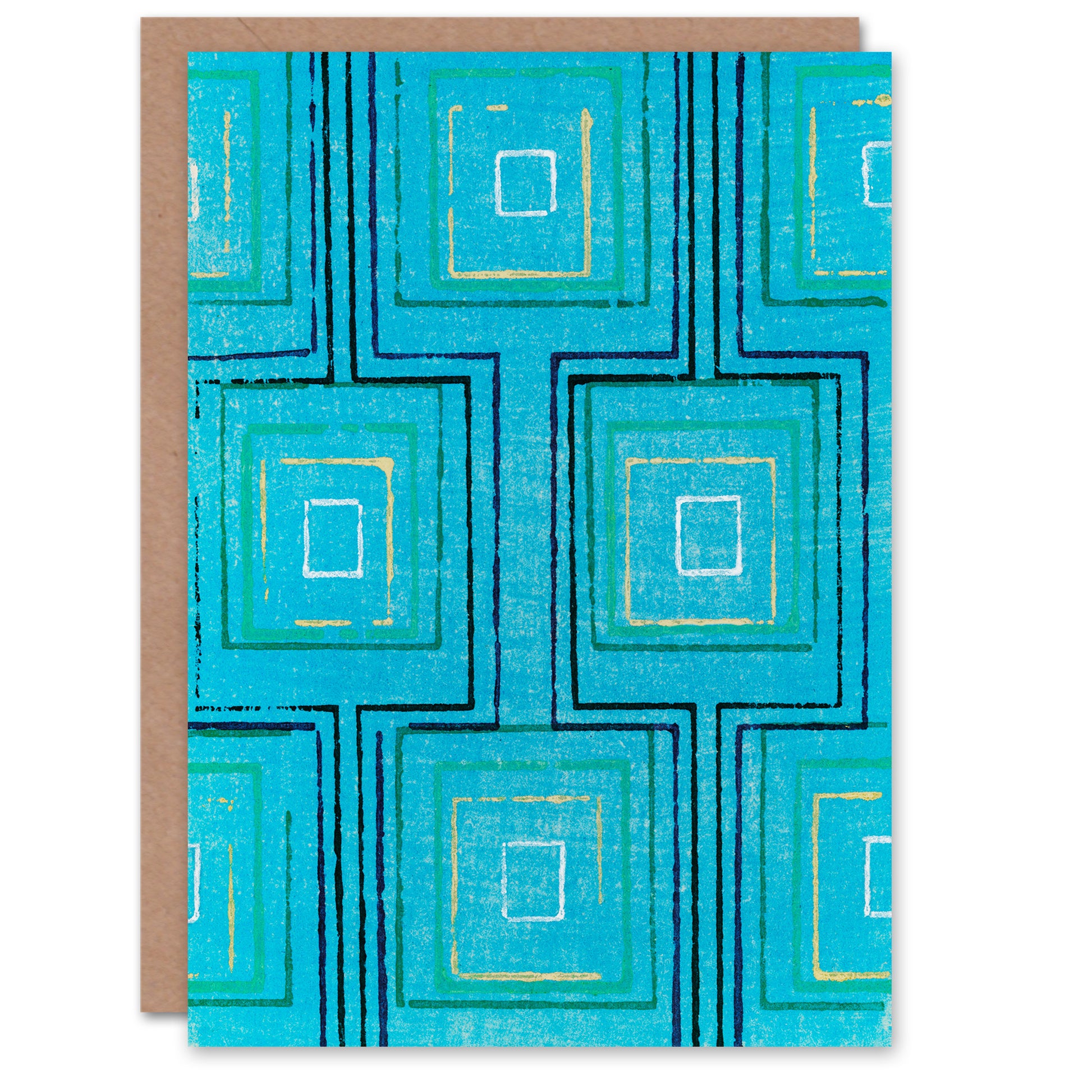 Furuya Korin Japanese Squares Geometric Blue Pattern Greetings Card