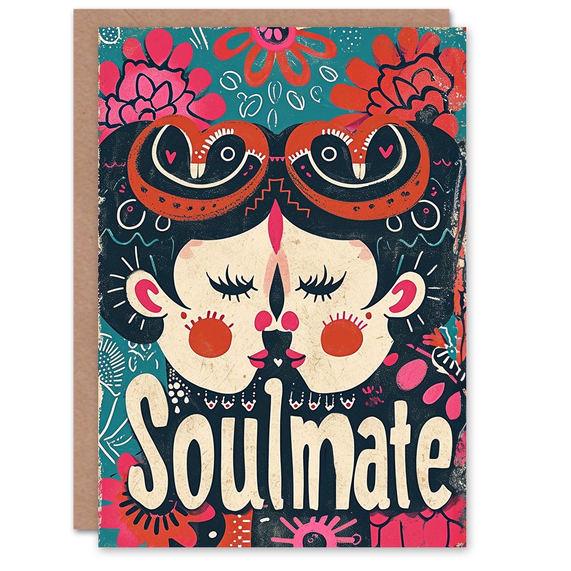 Gay Soulmate Lesbian Folk Art Romantic Card