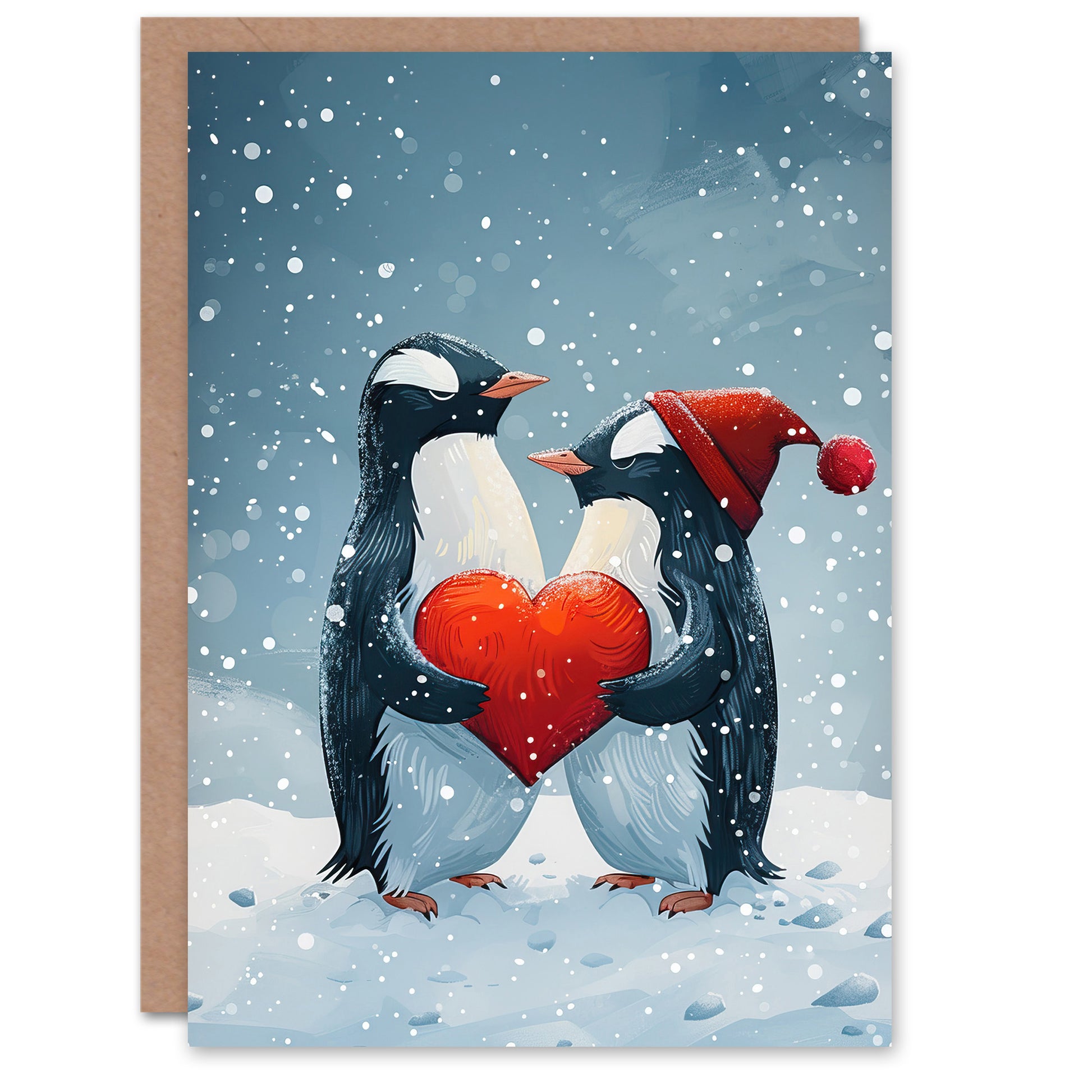 Gentoo Penguins Couple Love Heart Festive Christmas Card