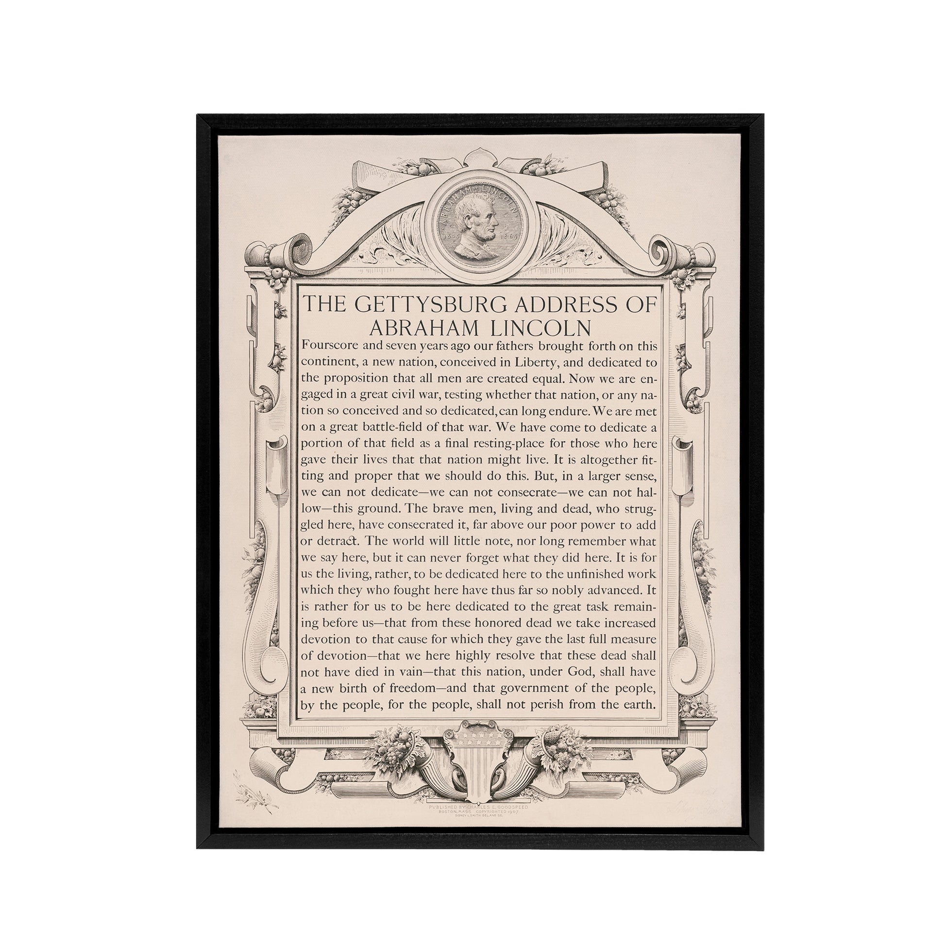 Gettysburg Address Abraham Lincoln Black Framed Canvas Wall Art Print