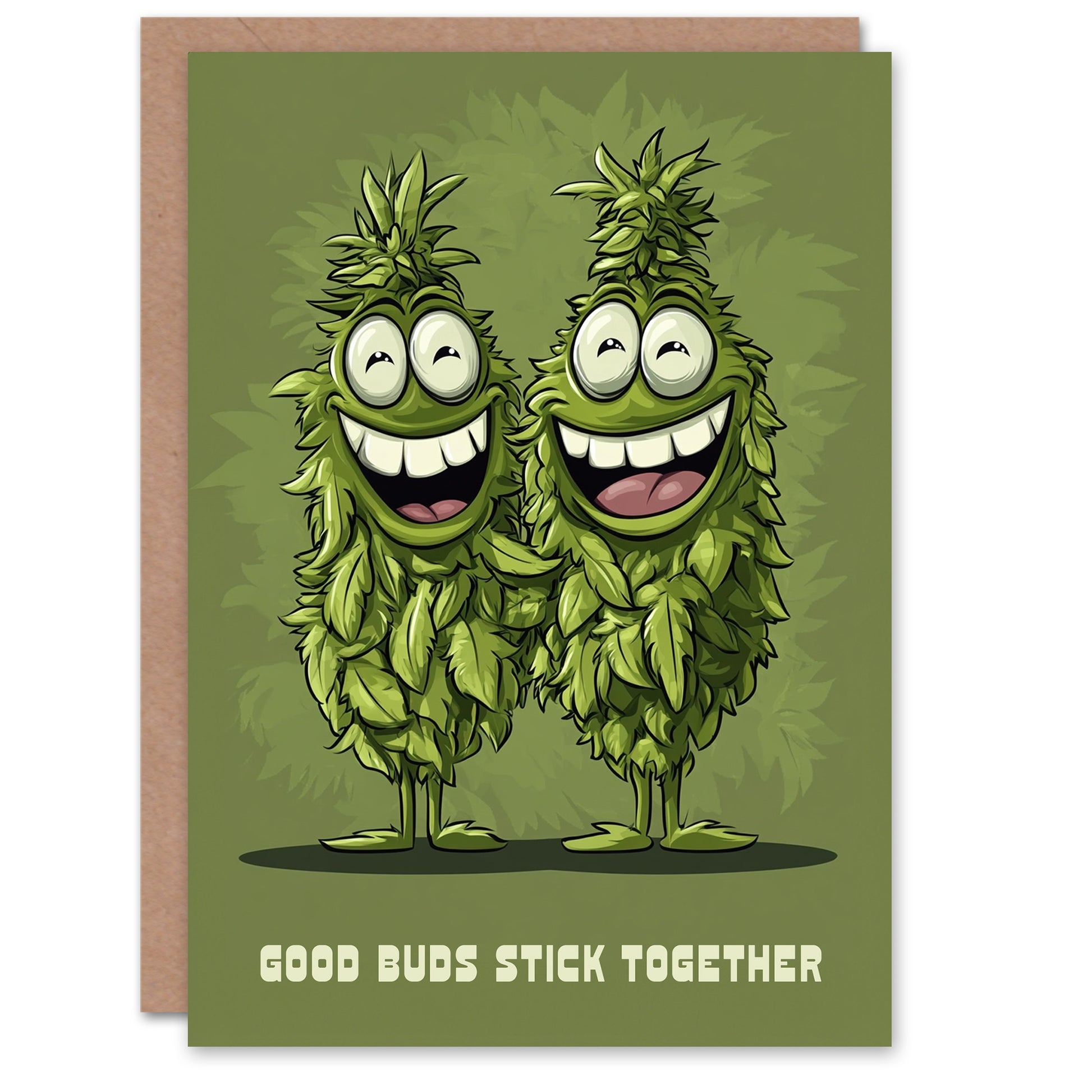 Good Buds Stick Together Funny Cartoon Design Stoner Art Card