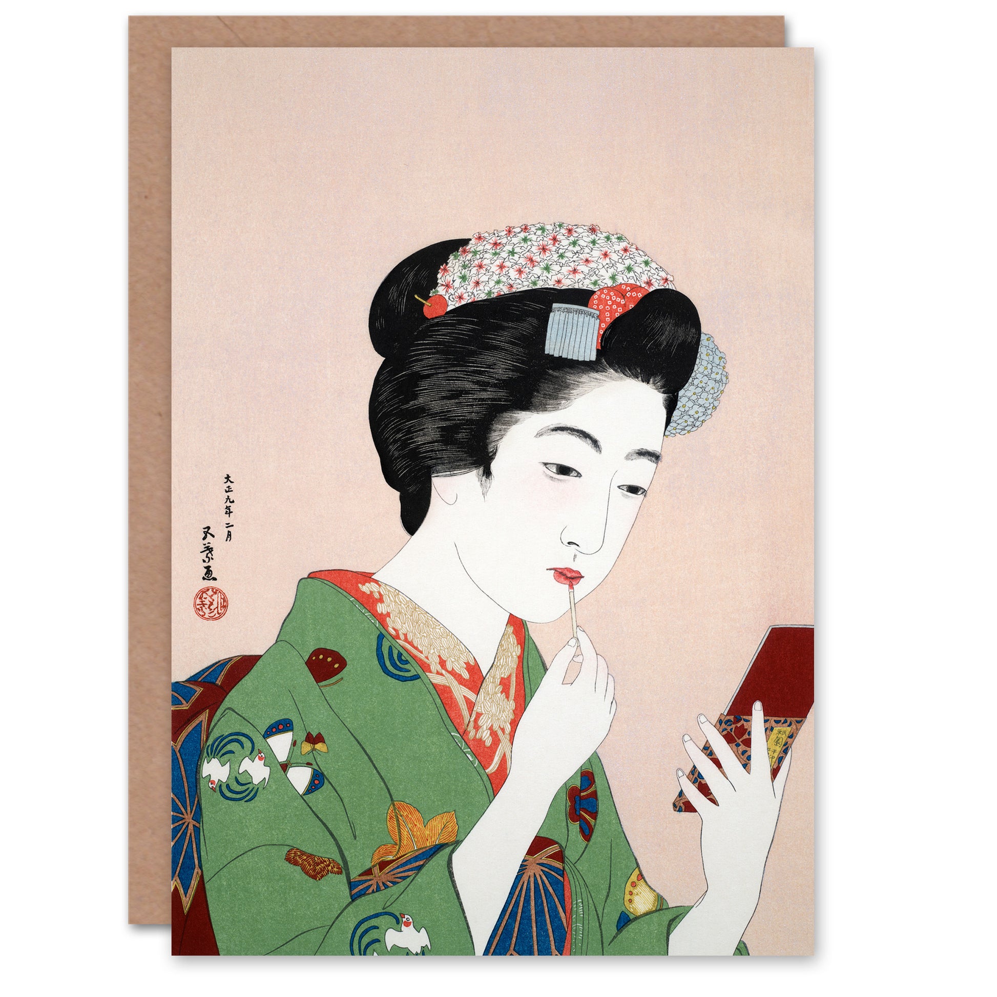 Goyo Hashiguchi Japanese Woman Applying Rouge Lipstick Greetings Card