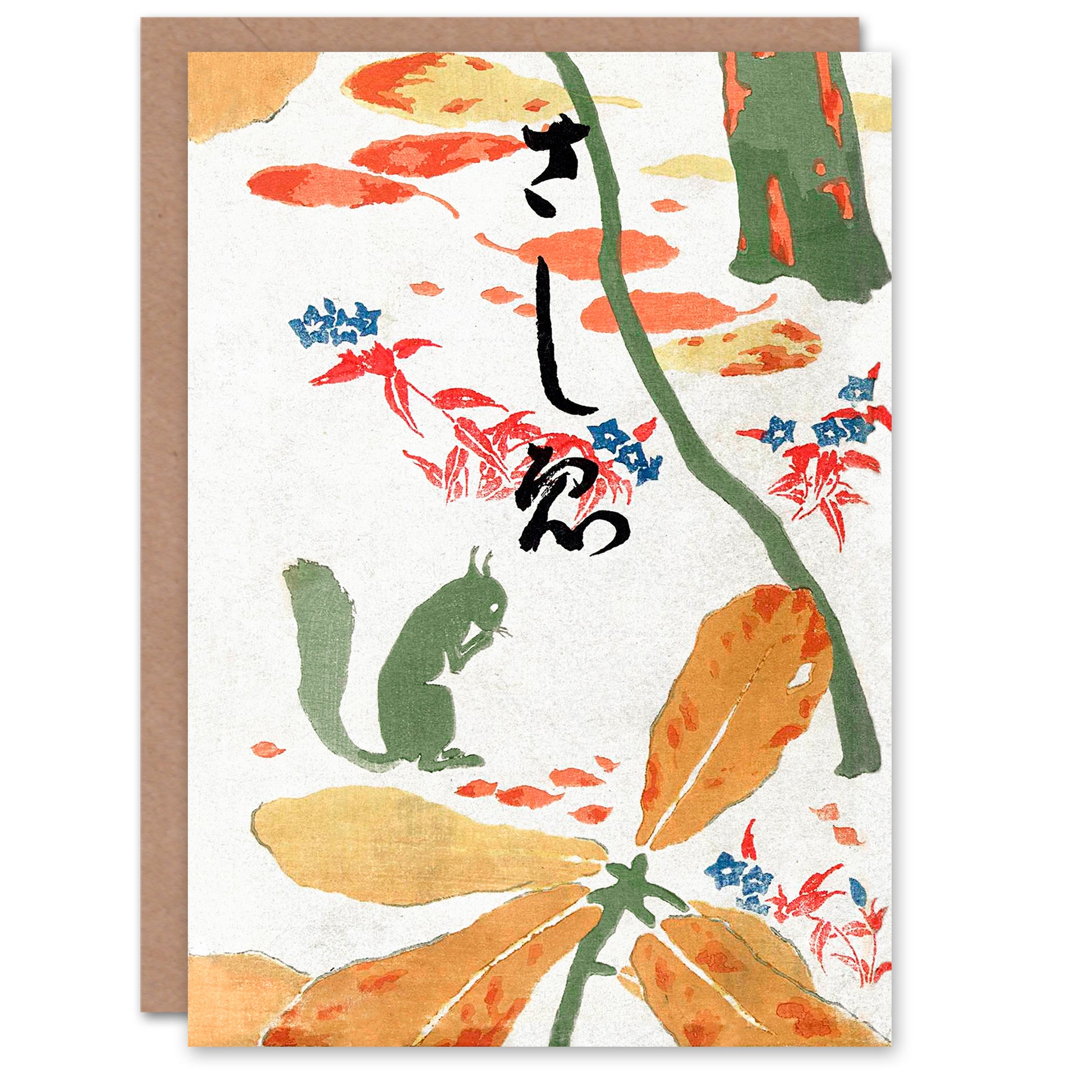 Goyo Hashiguchi Squirrel In Forest Vintage Japanese Greetings Card