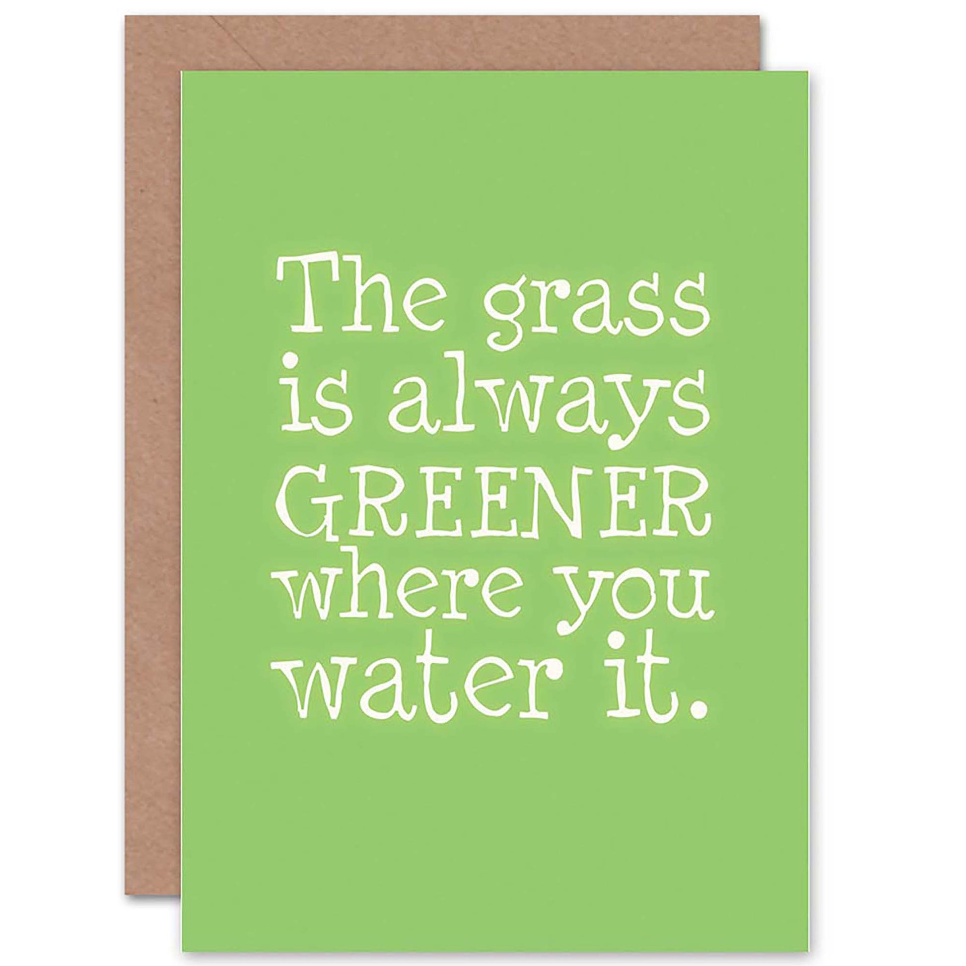 Grass Always Greener Water It Green Spring Quote Greetings Card