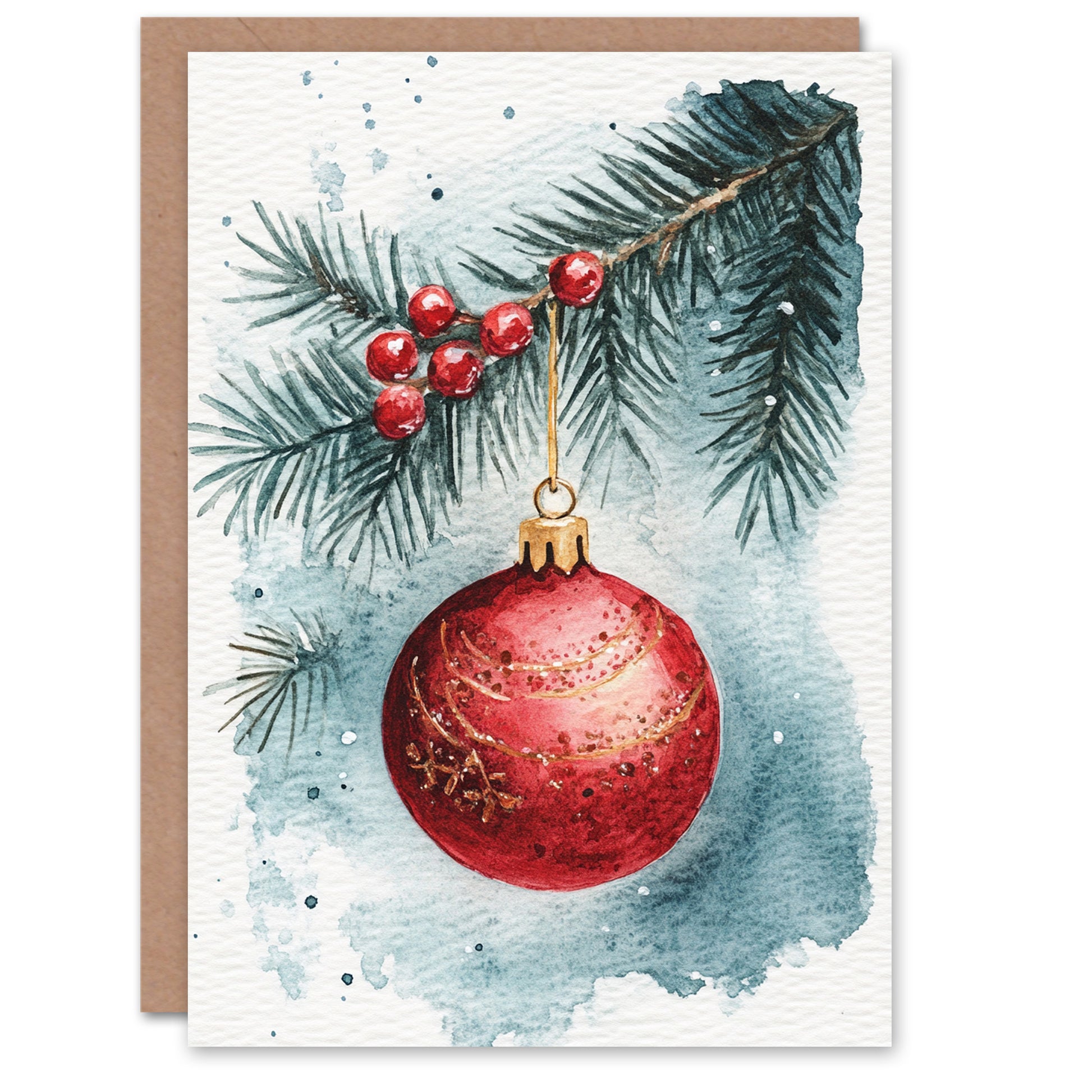 Hanging Red Gold Bauble Tree Ornament Christmas Card