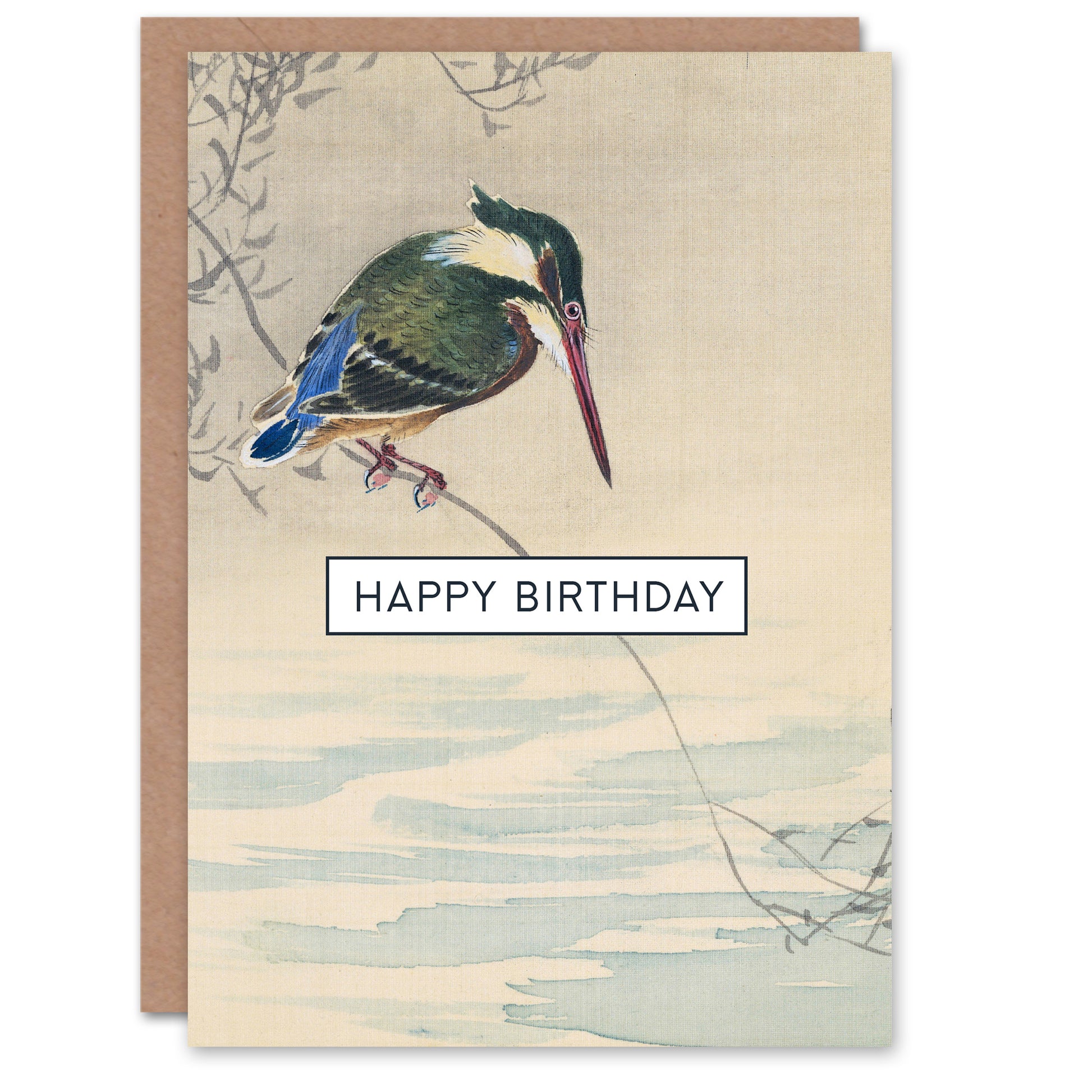 Happy Birthday Ohara Koson Japanese Kingfisher Bird Birthday Card
