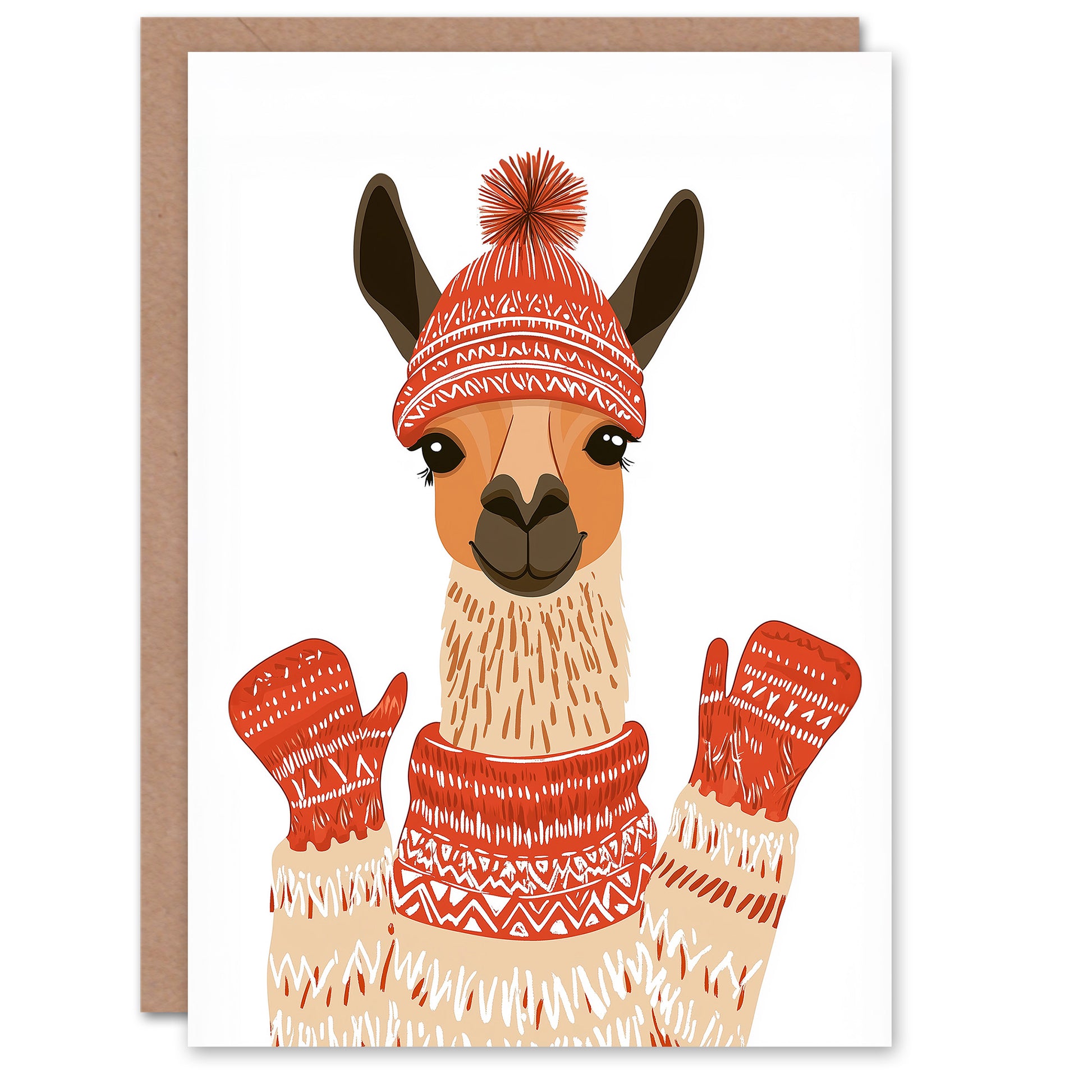 Happy Llama with Winter Hat Jumper and Gloves Christmas Card