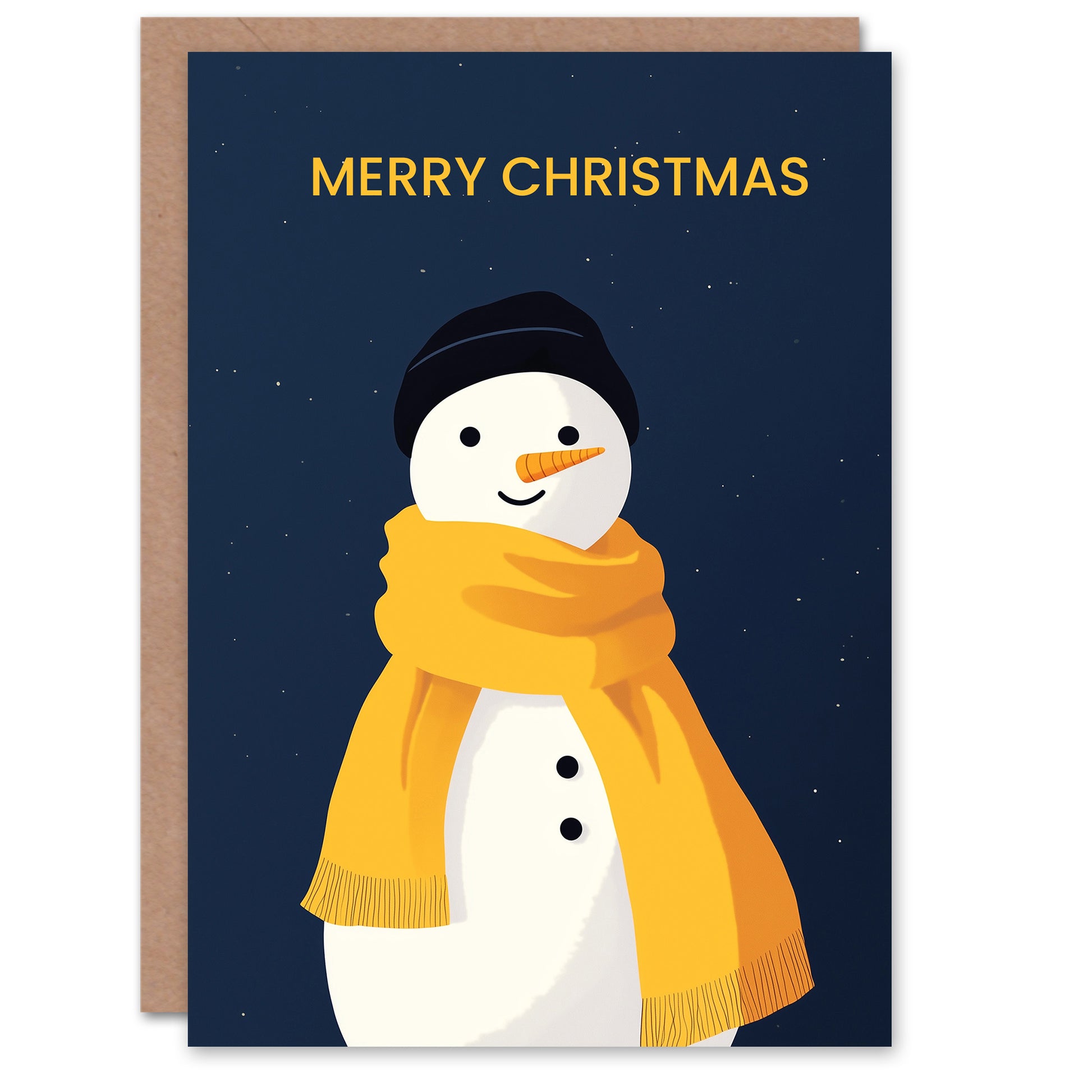 Happy Snowman With Yellow Winter Scarf And Hat Christmas Card