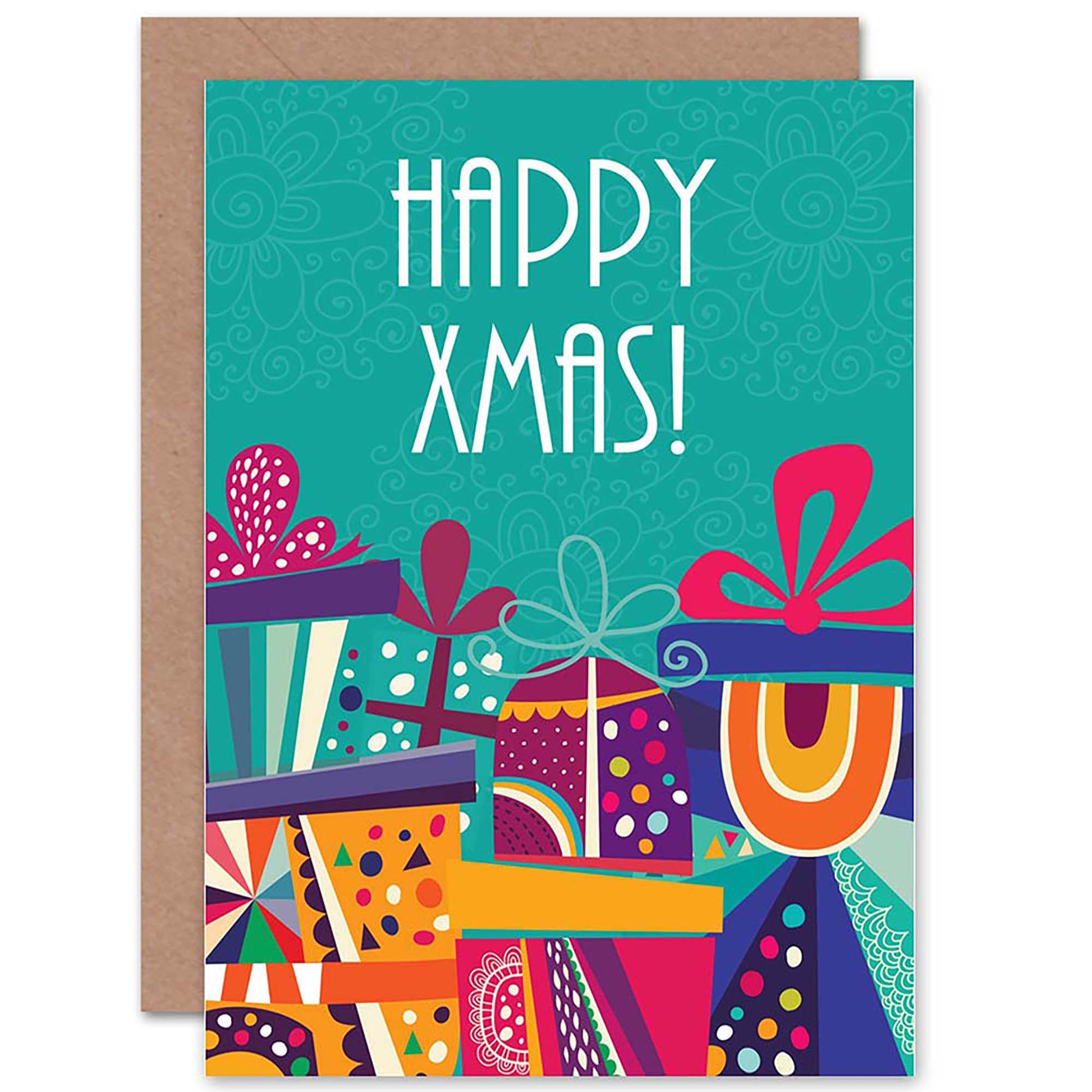 Happy Xmas Blue Presents Modern Colourful Christmas Card