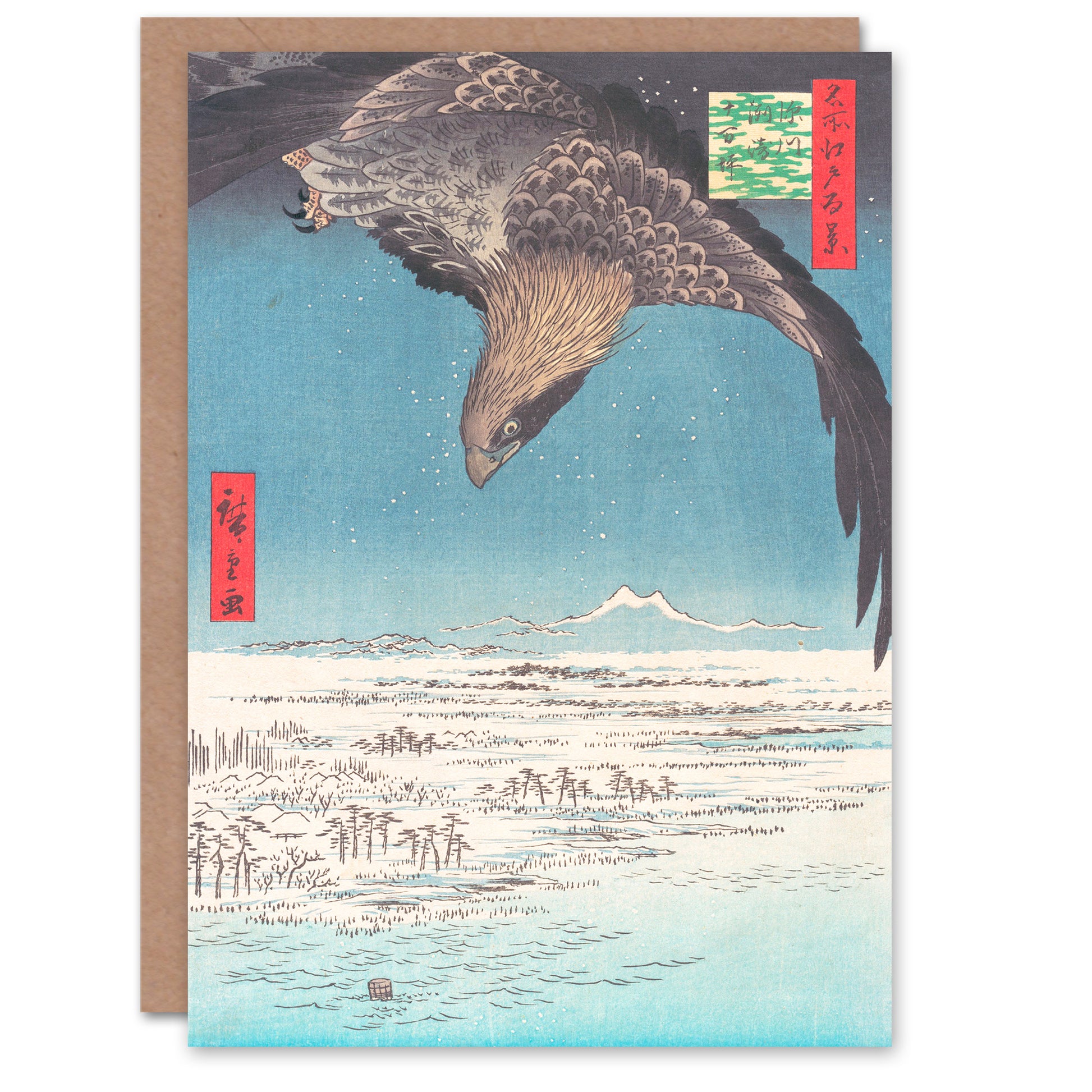 Hiroshige Japanese Hawk Over Jumantsubo Plain At Fukagawa Greetings Card