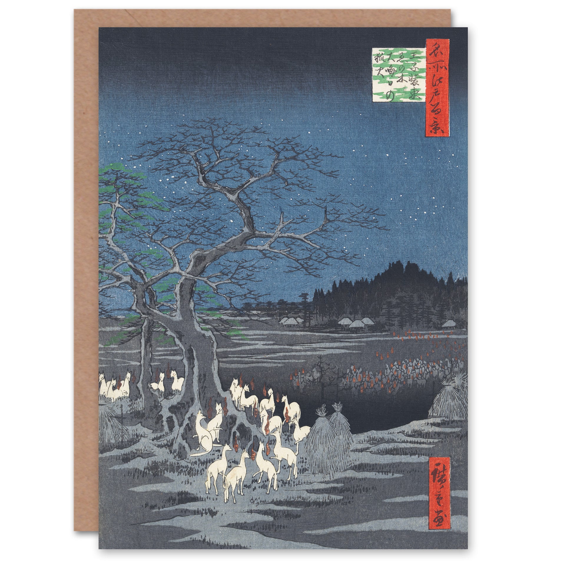 Hiroshige Japanese New Years Eve Foxfires At Changing Tree Greetings Card