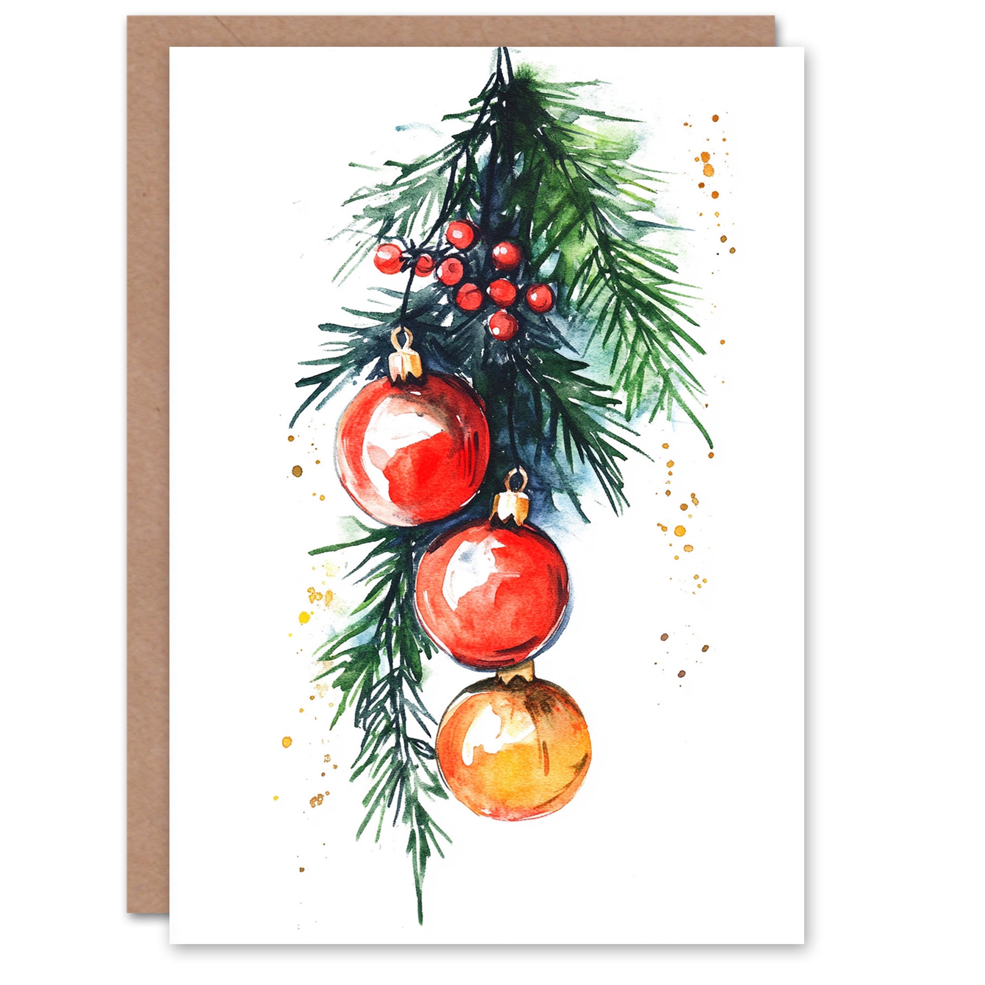 Holly Pine Tree Baubles Holiday Festive Christmas Card