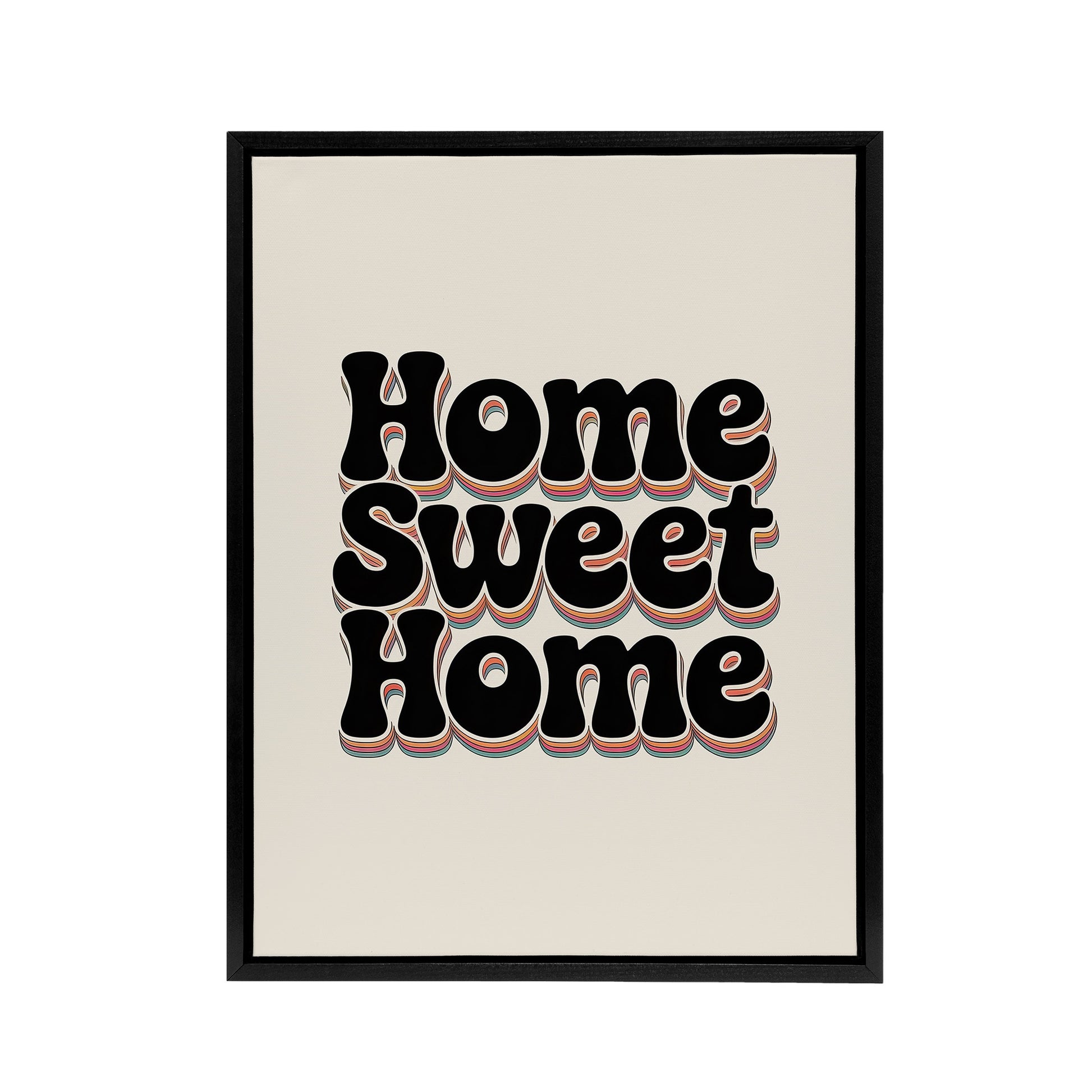Home Sweet Home Retro Rainbow Font Typography Framed Canvas Art Print