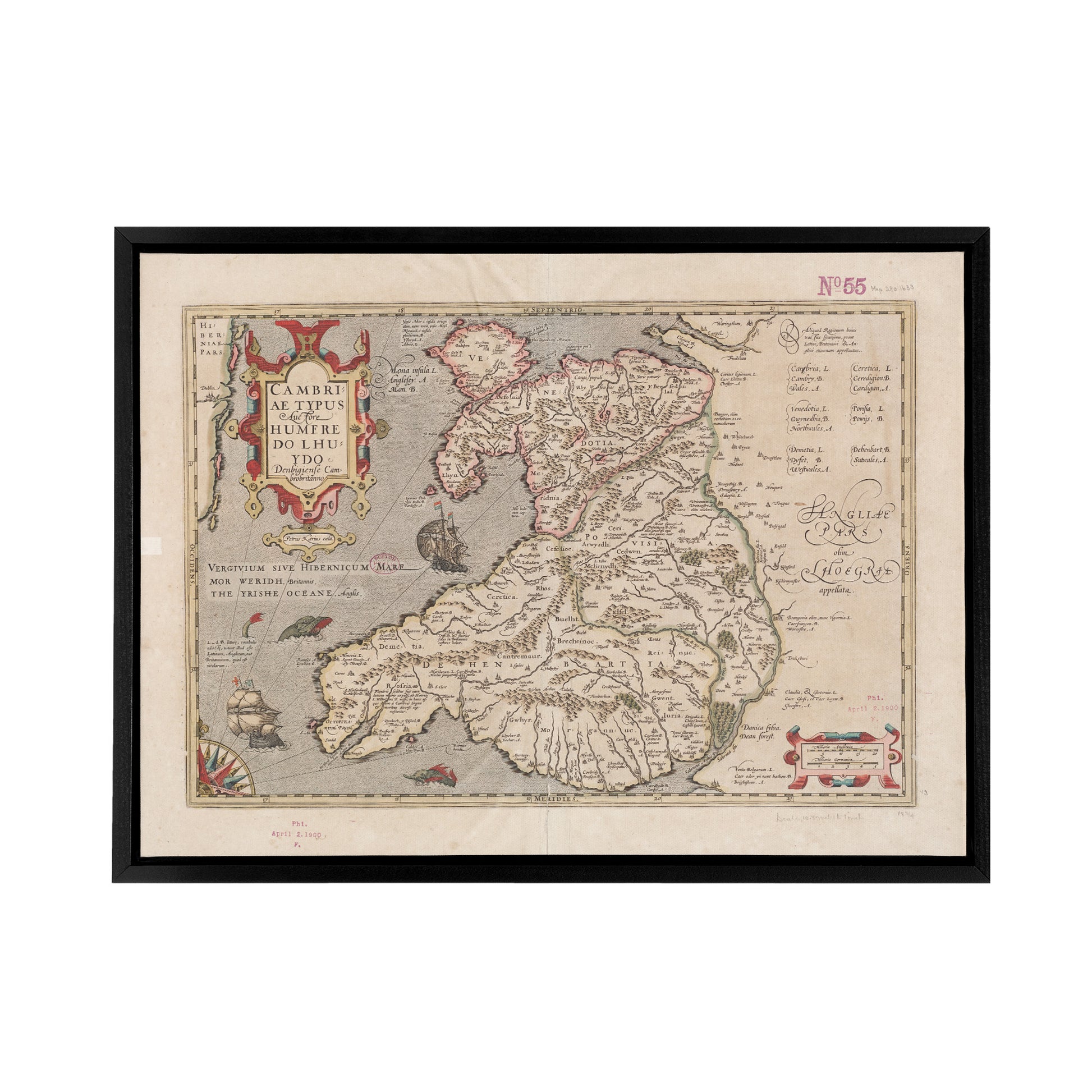 Hondius 1633 Wales Latin Early Map Black Framed Canvas Wall Art Print
