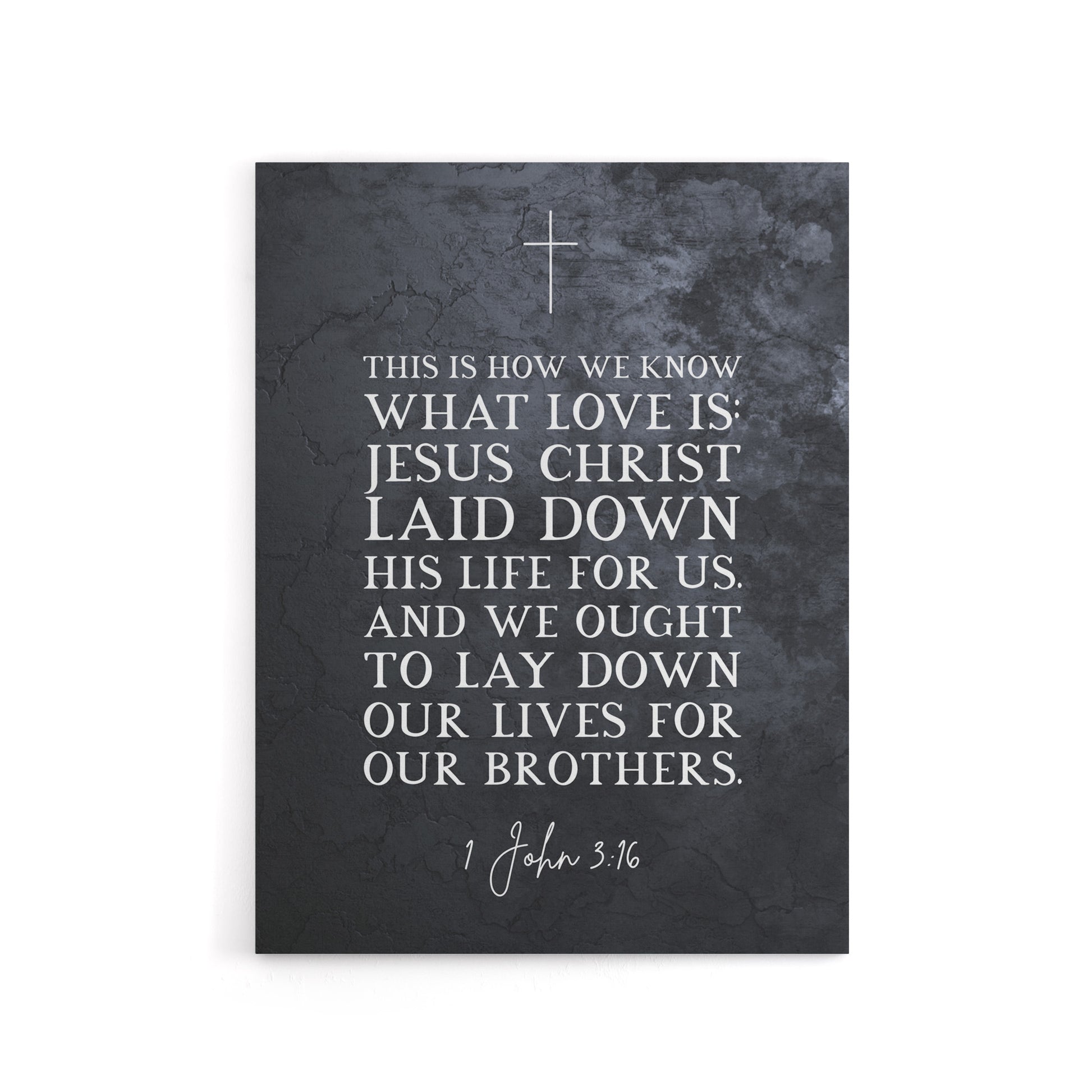 “1 John 3 16 Love Jesus Christ Laid Down His Life For Us Christian Bible Verse Quote Scripture Typography” comes to life as a wrapped canvas print crafted for ready-to-hang display. This wrapped canvas print elevates your home with artful detail and vibrant colour. Versatile and ready to hang, it suits living rooms, bedrooms, offices, or creative studios. A stylish choice that adds personality and visual interest to your walls. “For God So Loved the World” inspirational scripture design, timeless Christian decor for living room or chapel.