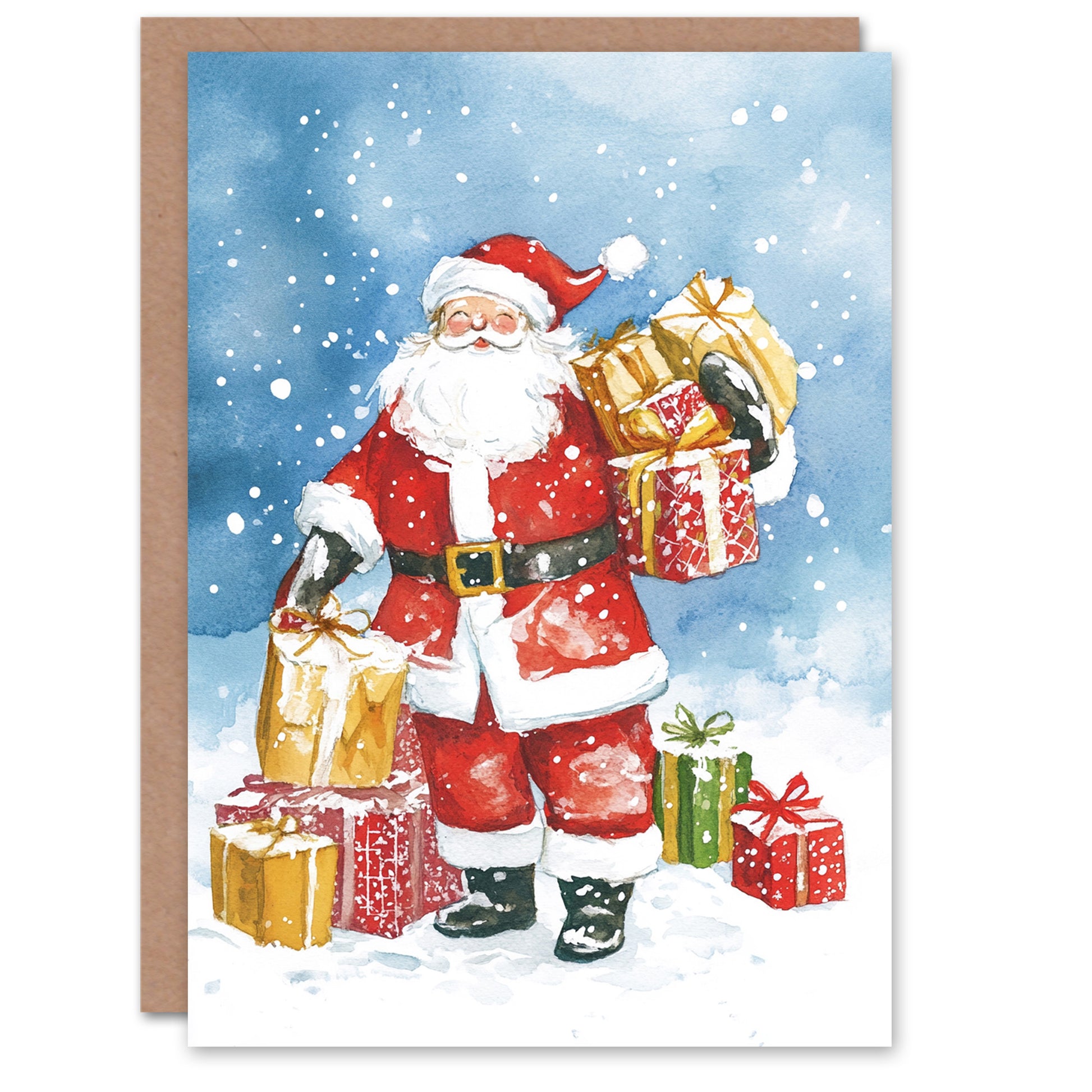 Jolly Santa Claus Carrying Gifts Presents Festive Christmas Card