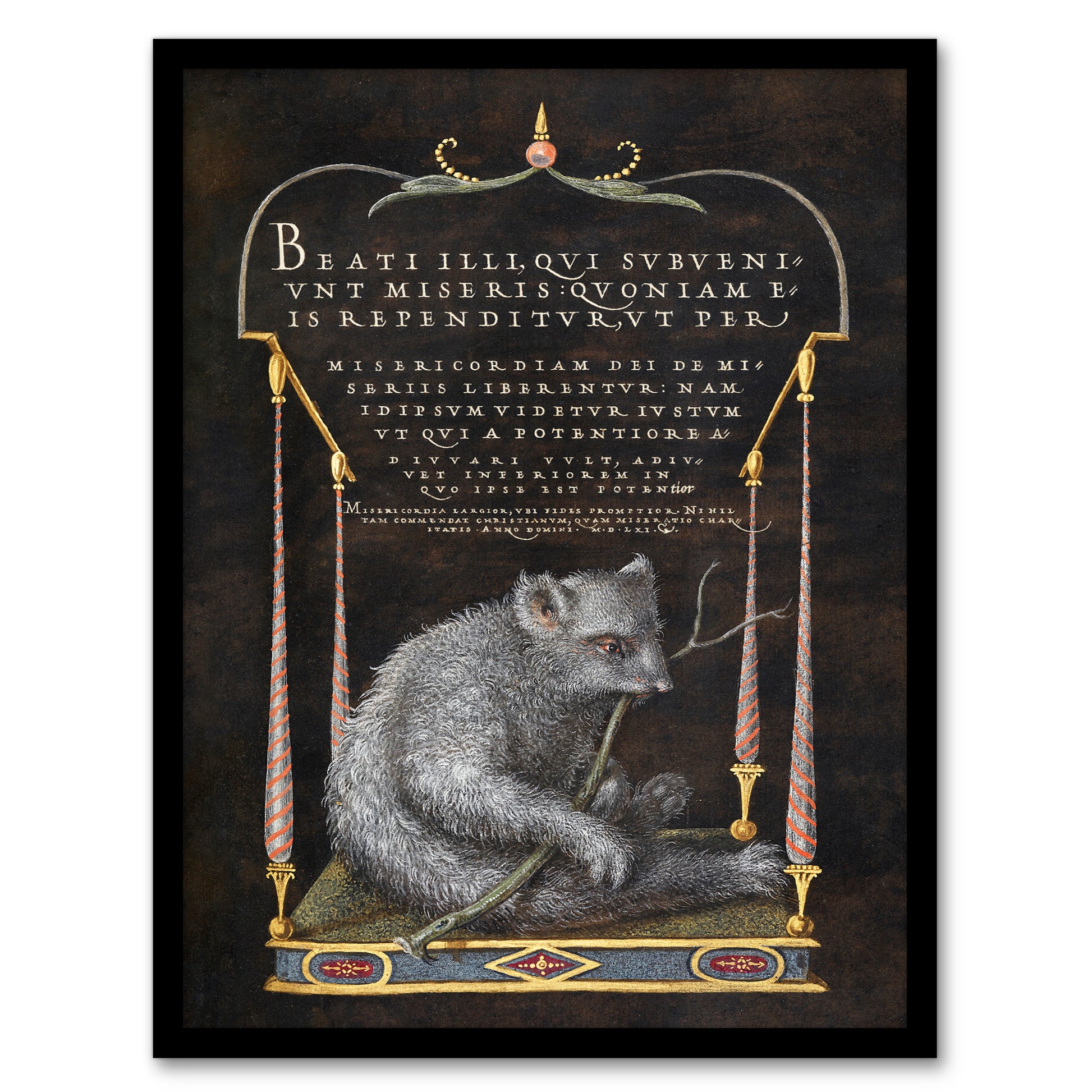 Joris Hoefnagel Framed Wall Art Latin Beatitudes with Sloth Illustration