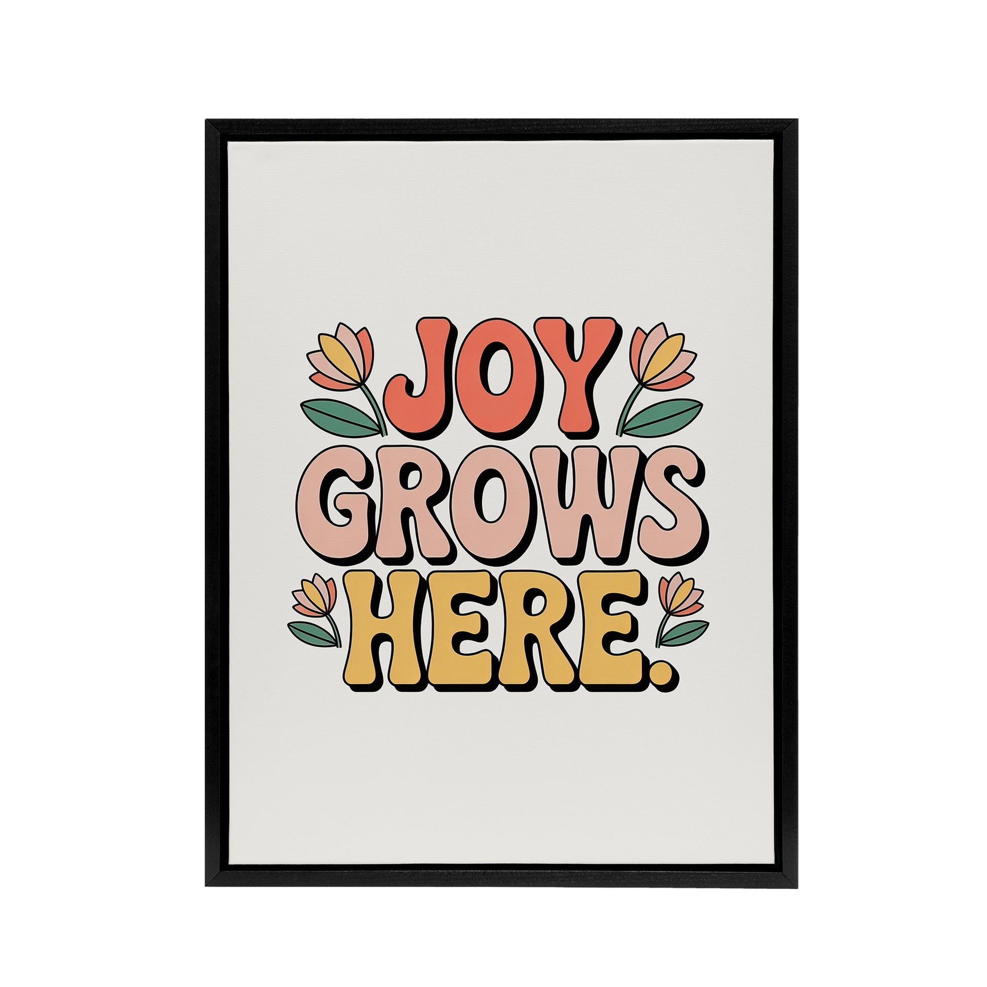 Joy Grows Here Retro Floral Pastel Typography Framed Canvas Art Print