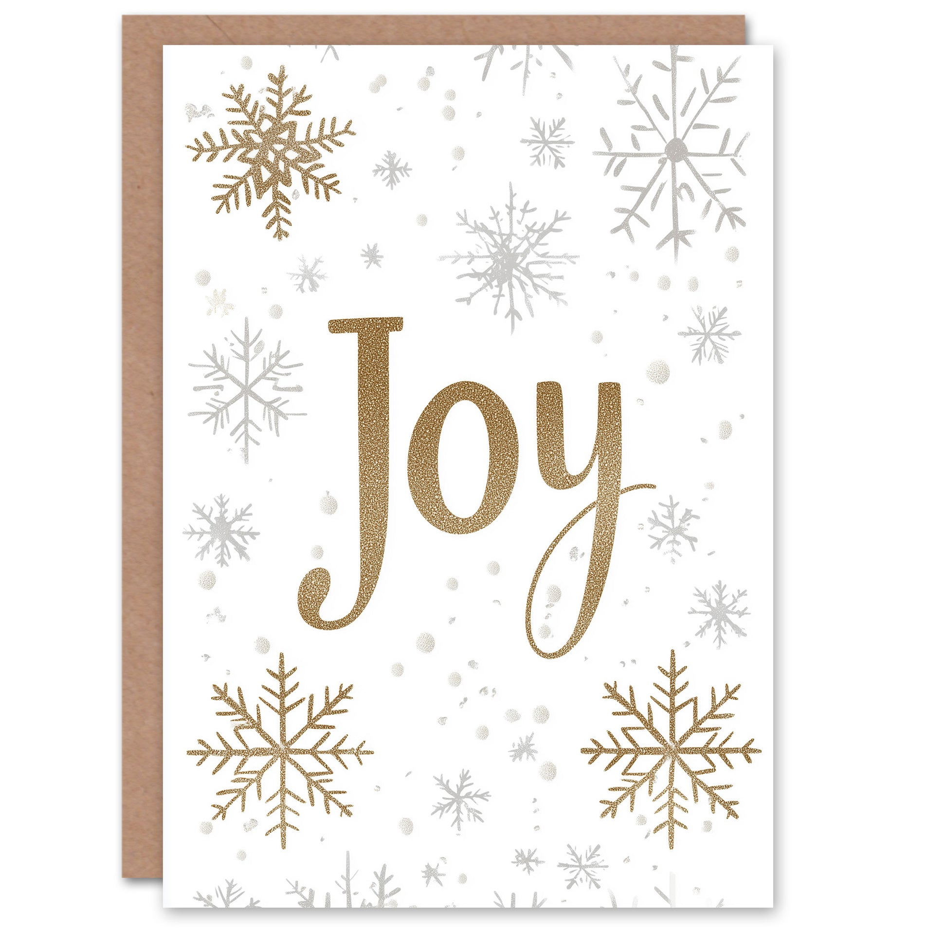 Joy Snowflakes Gold Silver Bright Modern Christmas Card