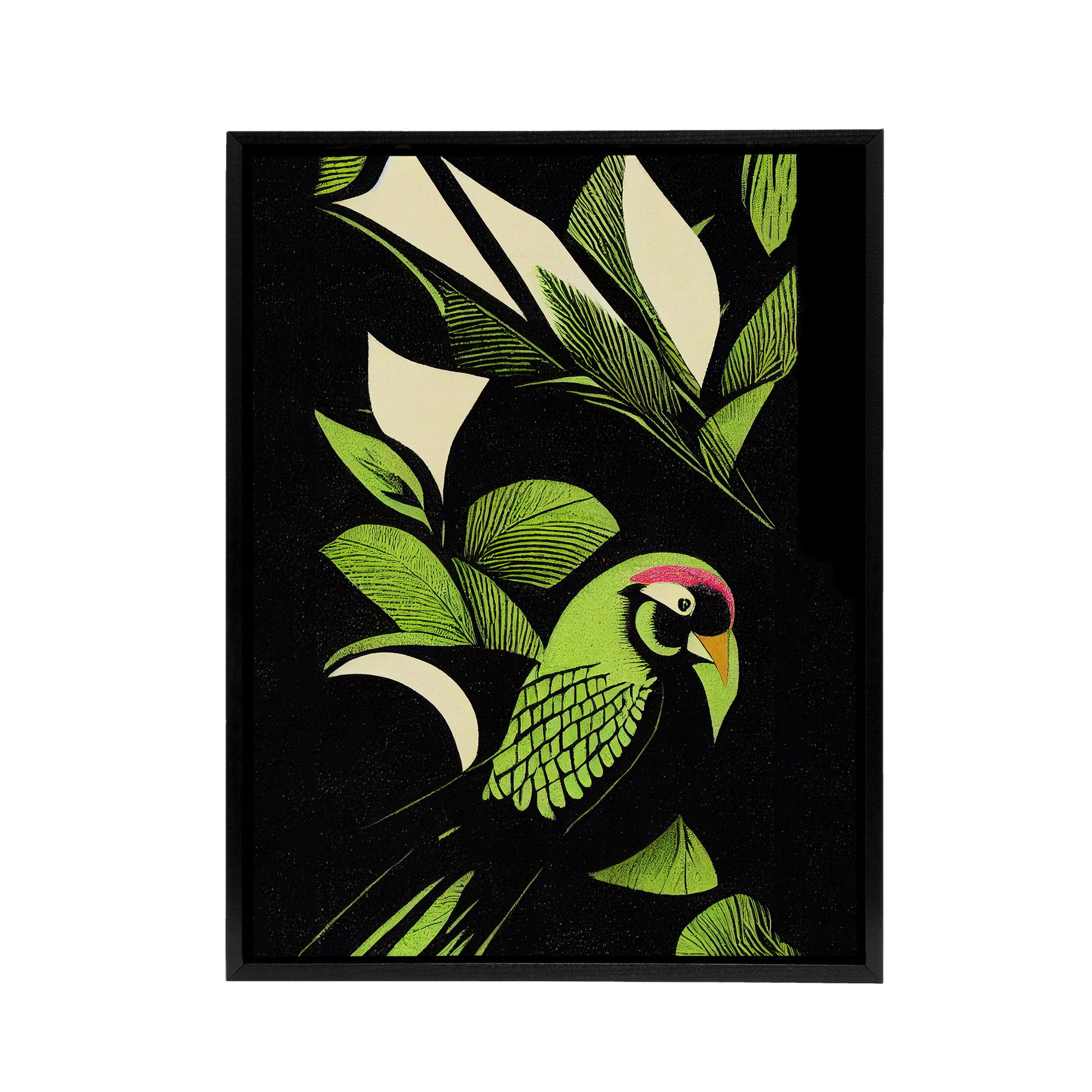 “Lime Cream Jungle Leaf Pattern with Bird Linocut” comes to life as a Framed Canvas print crafted for ready-to-hang display. This Framed Canvas print elevates your home with artful detail and vibrant colour. Versatile and ready to hang, it suits living rooms, bedrooms, offices, or creative studios. A stylish choice that adds personality and visual interest to your walls. Tropical rainforest scene bursting with lush greens and colour, exotic focal point for vibrant home decor