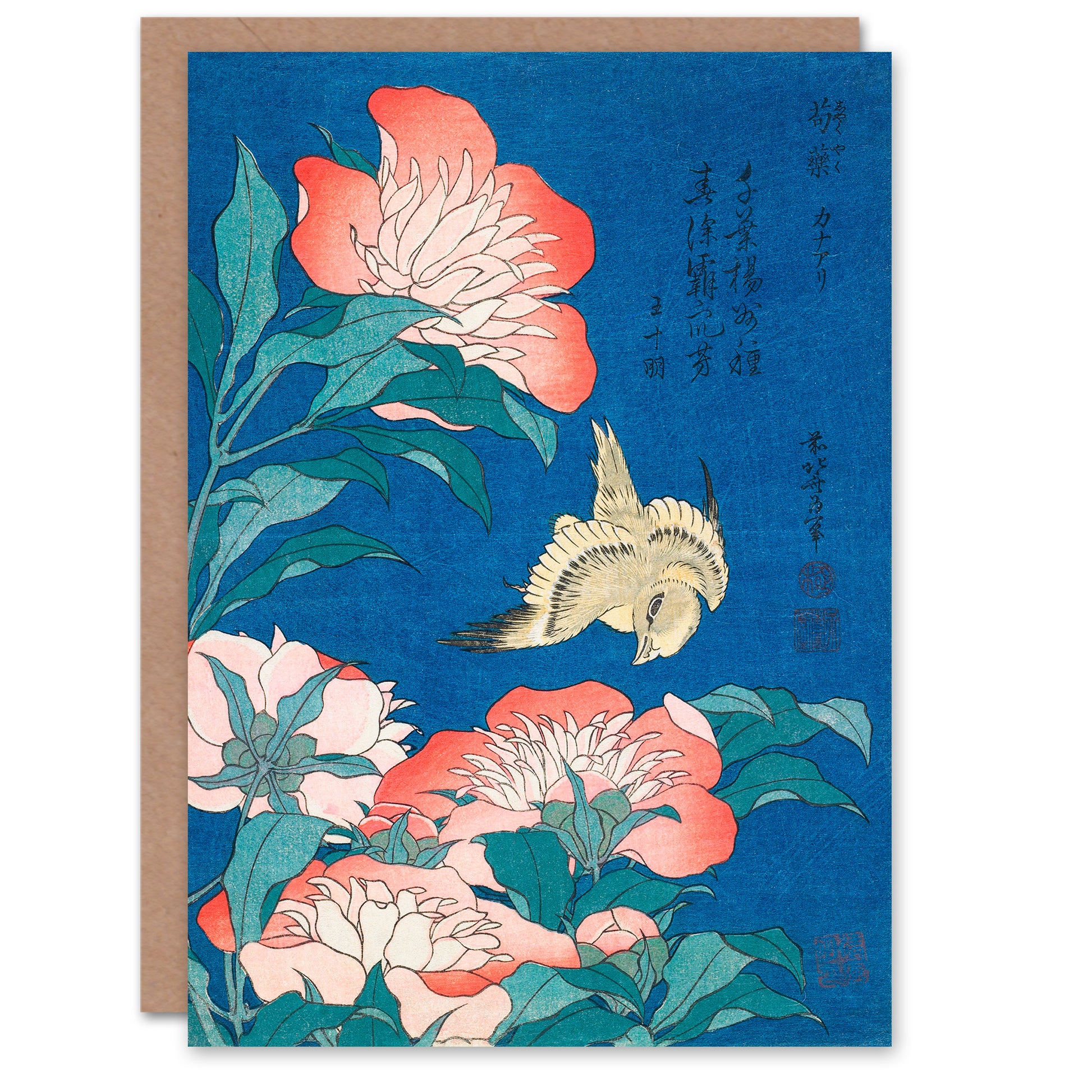 Katsushika Hokusai Japanese Canary and Peony Flowers Greetings Card