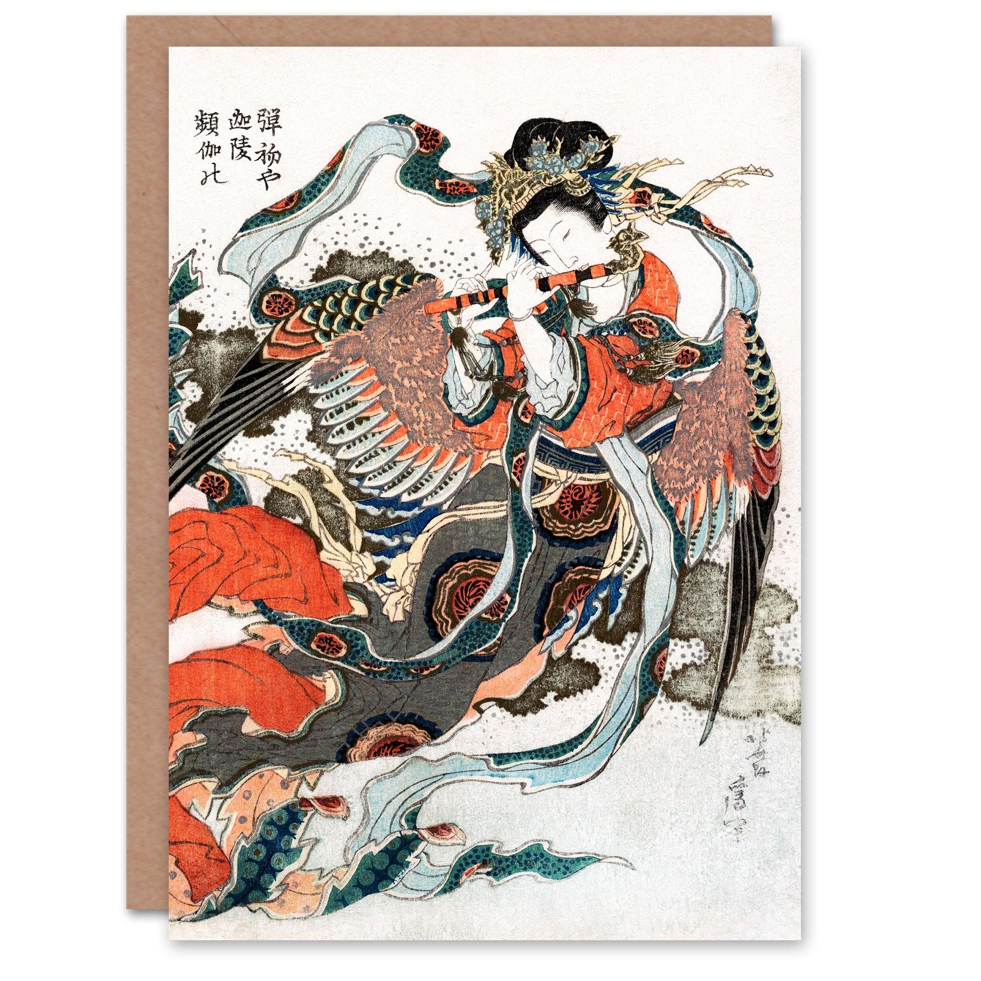 Katsushika Hokusai Japanese Mystical Bird Woman with Flute Greetings Card