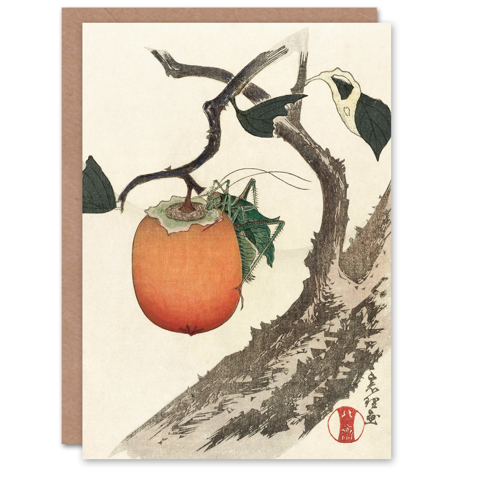 Katsushika Hokusai Japanese Persimmon Fruit With Grasshopper Greetings Card