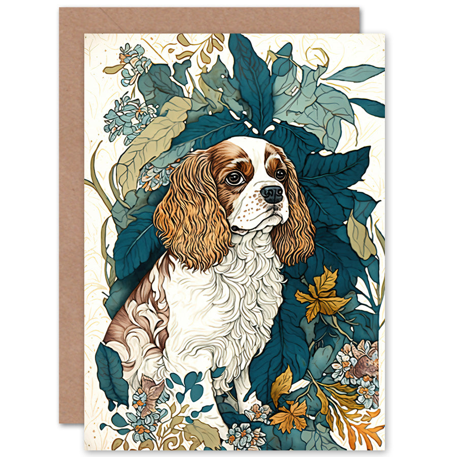King Charles Spaniel Leafy Plants Dog Greetings Card