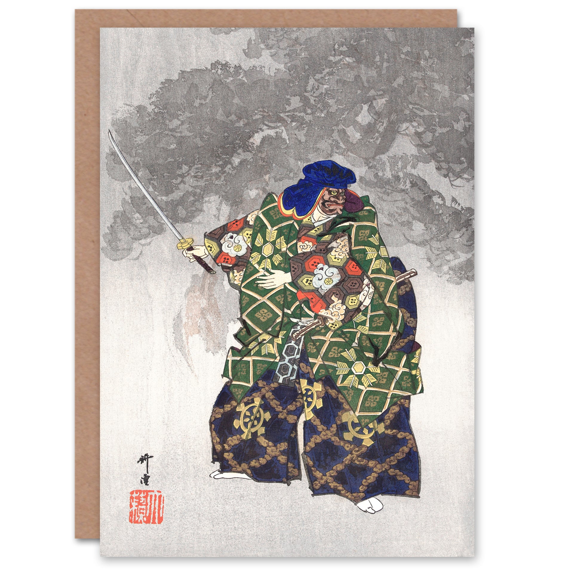 Kogyo Tsukioka Japanese Noh Play Eboshiori Actor Costume Greetings Card
