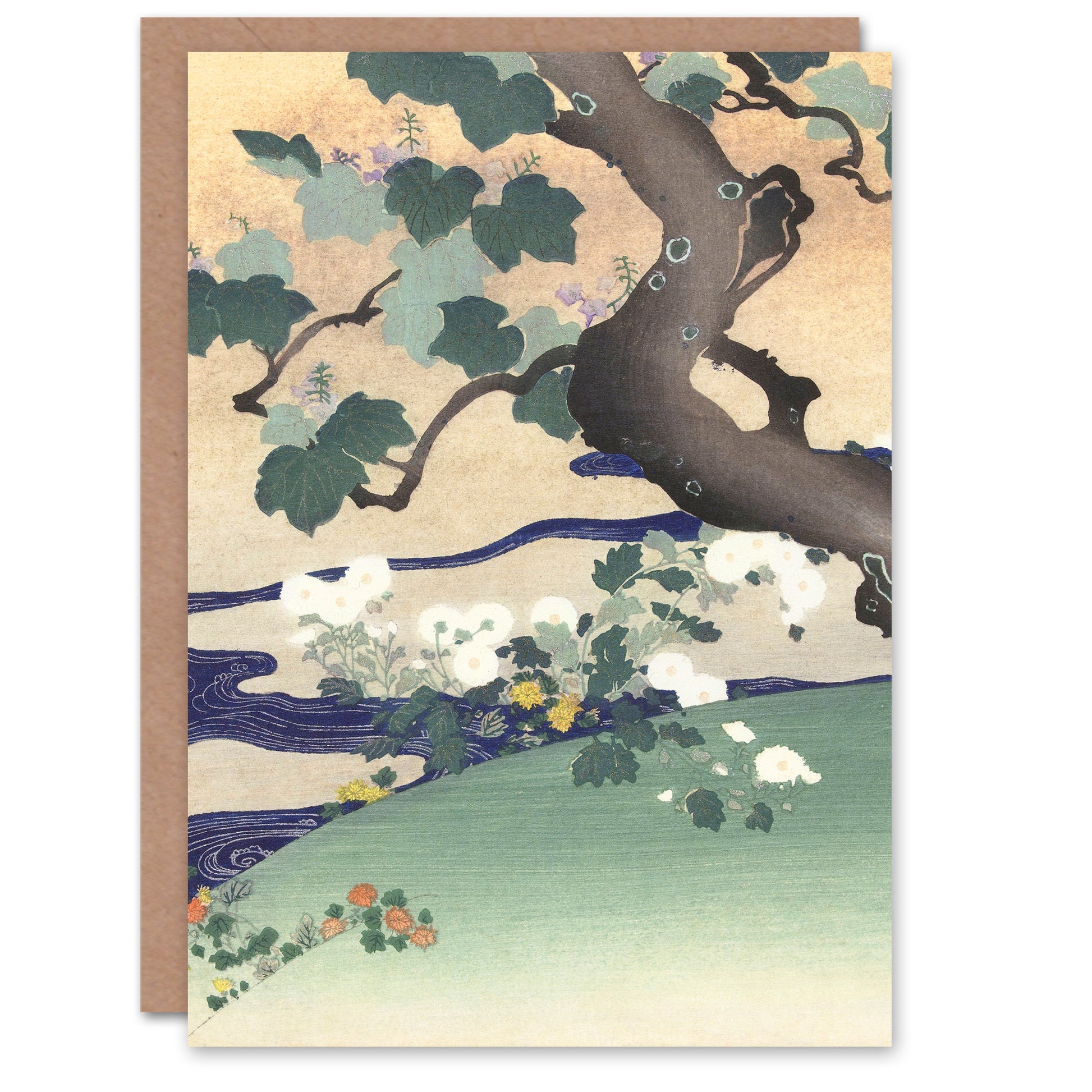 Kogyo Tsukioka Japanese Tree And Chrysanthemums Greetings Card