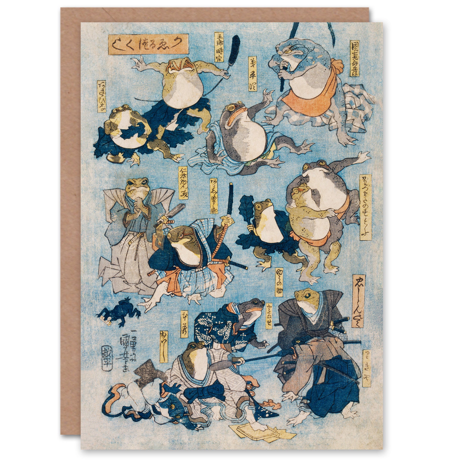 Kuniyoshi Art Card Kabuki Famous Heroes Played by Frogs