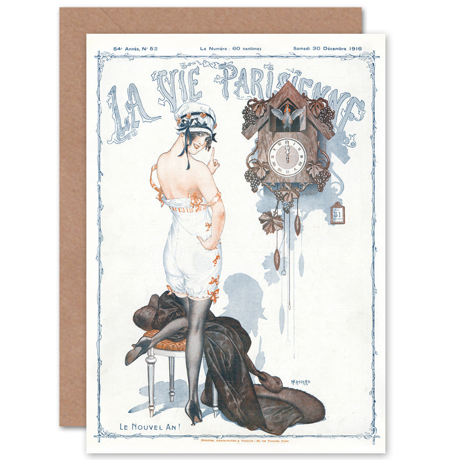 La Vie Parisienne Cuckoo Clock Magazine Cover New Year Card